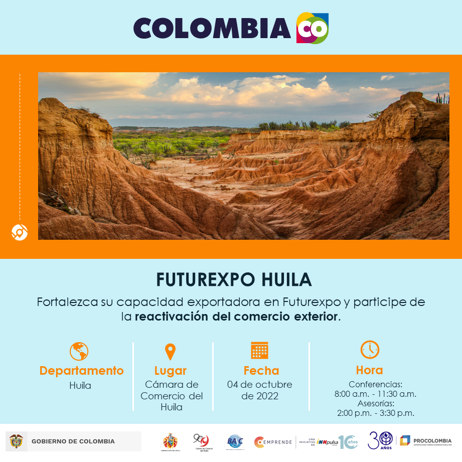 ProColombia organizará FuturExpo Huila, un espacio mediante el cual empresarios, estudiantes y emprendedores tendrán la posibilidad de conocer el proceso sobre cómo exportar y las estrategias claves para lograr una buena expansión internacional.