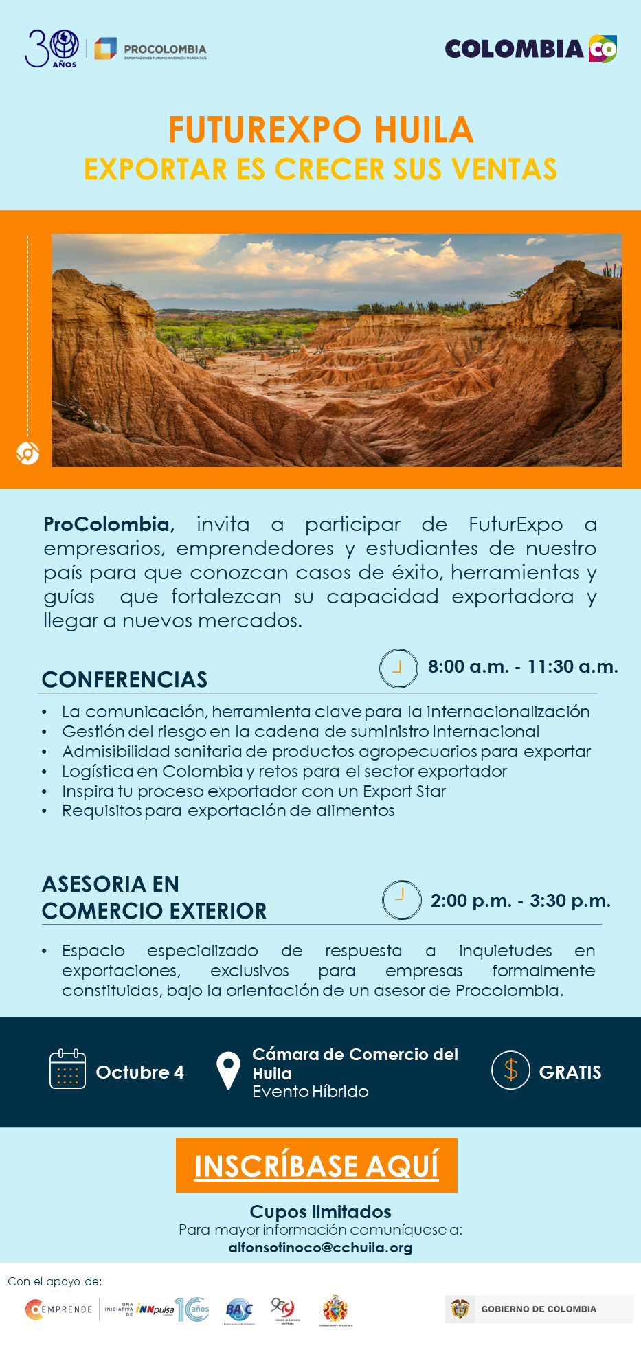 Este 4 de octubre se desarrollará FuturExpo Huila, un encuentro que busca capacitar a las empresas para motivarlas a exportar y ofrecer sus productos no mineros y servicios en el mercado internacional.