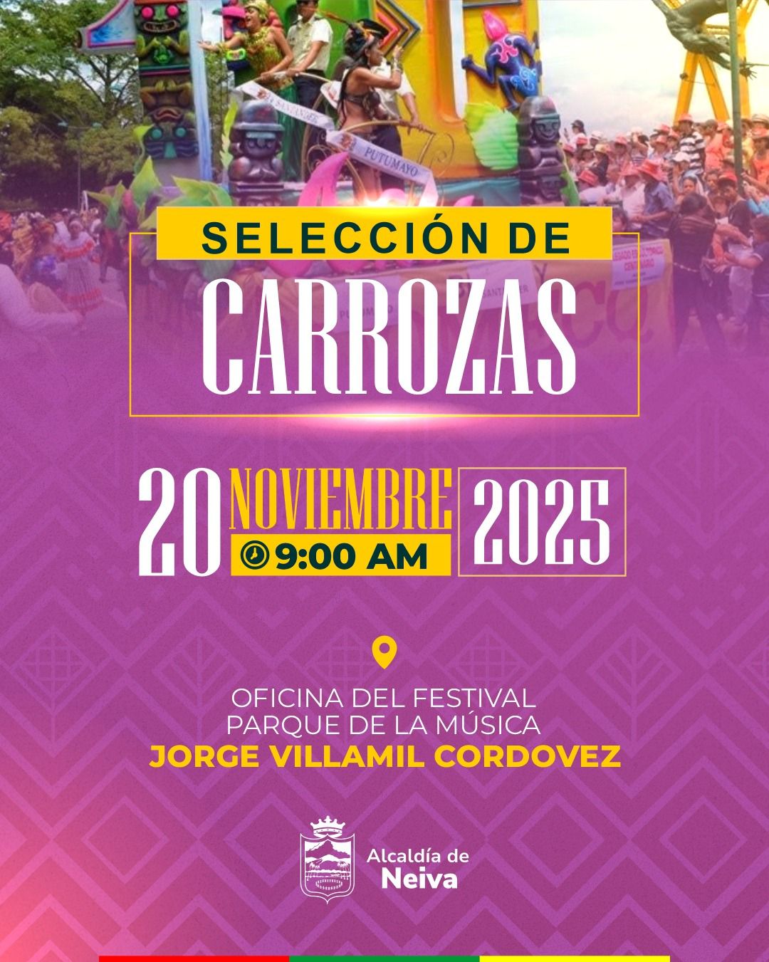 La convocatoria ya está dispuesta en la página web de la Alcaldía de Neiva, www.alcadianeiva.gov.co , con los términos de referencia correspondientes a cada categoría, dentro de las cuales están, danzas, comparsas, rajaleñas infantil – juvenil y adultos, carrozas y bambuco tradicional.