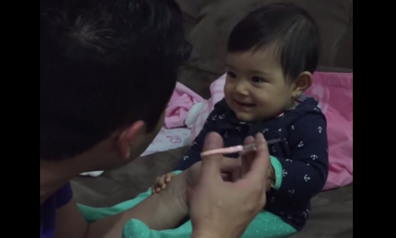 En las imágenes se ve a la bebé sobre una cama lanzando pequeños gritos al ver que su papá está a punto de cortarle las uñas, lo cual produjo múltiples risas entre los dos.