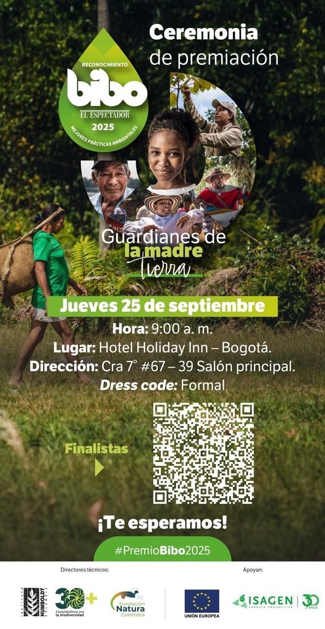 Para esta nueva edición del Premio BIBO 2025 Guardianes de la madre tierra, se recibieron 230 iniciativas, de las cuales se eligieron 86 semifinalistas, donde el jurado conformado por la Fundación Natura y el Instituto Amazónico de Investigaciones Científicas SINCHI ya escogió a los mejores proyectos ambientales en cada una de las tres categorías, cuyos ganadores se conocerán el próximo jueves 25 de septiembre en el hotel Holiday Inn., a las9:00 a.m.