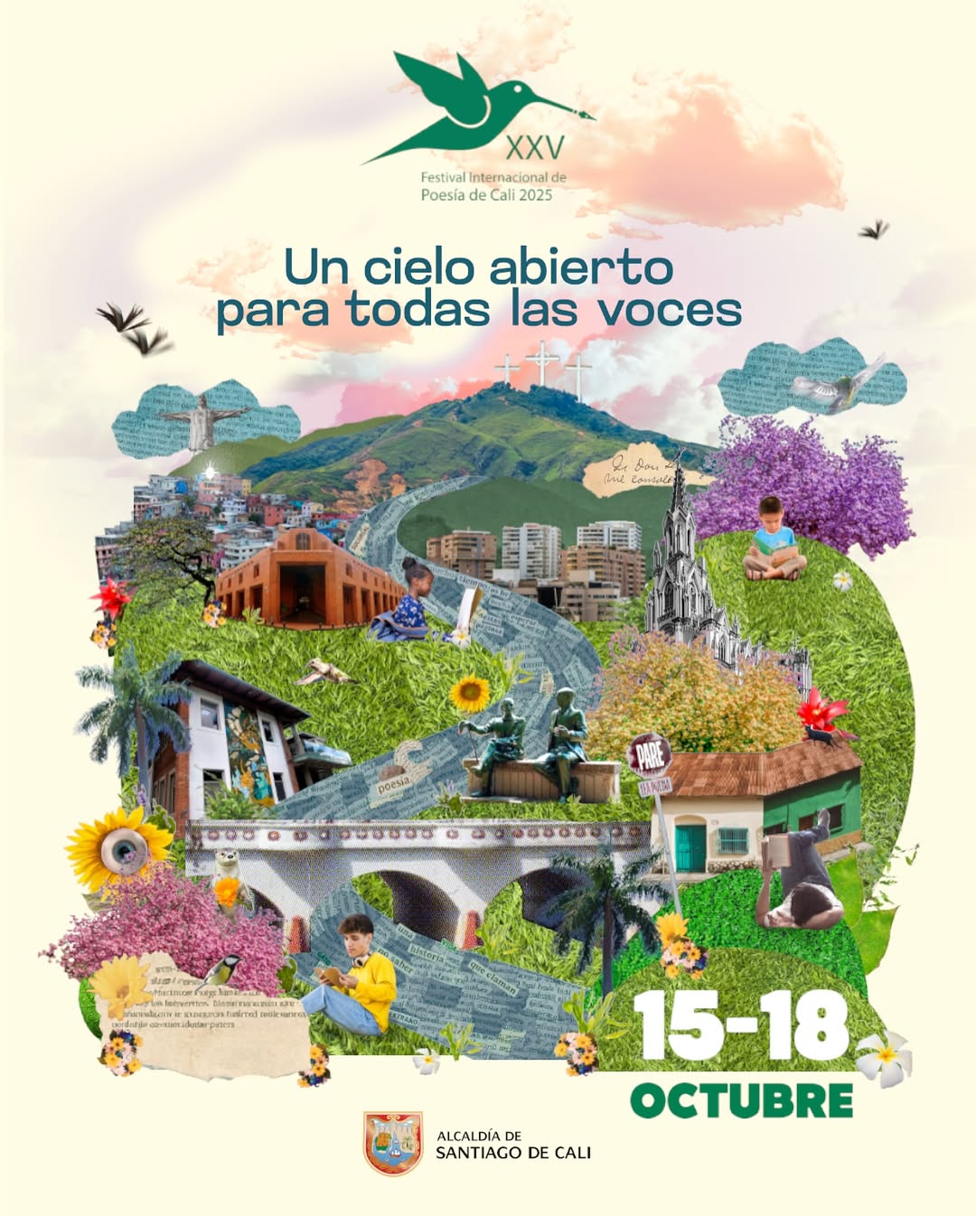 Entre el 15 y el 18 de octubre, Cali, capital del Valle del Cauca, se viste de cultura con la versión número 25 del Festival Internacional de Poesía, en cuyo marco poetas locales, nacionales e internacionales estarán dejando sus poemas en diferentes lugares de la ciudad como: centros culturales, instituciones educativas, bibliotecas, parques iglesias y diferentes comunidades del sector urbano y rural.