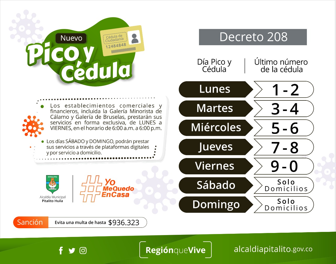 Las personas podrán salir de acuerdo con último dígito de la cédula.