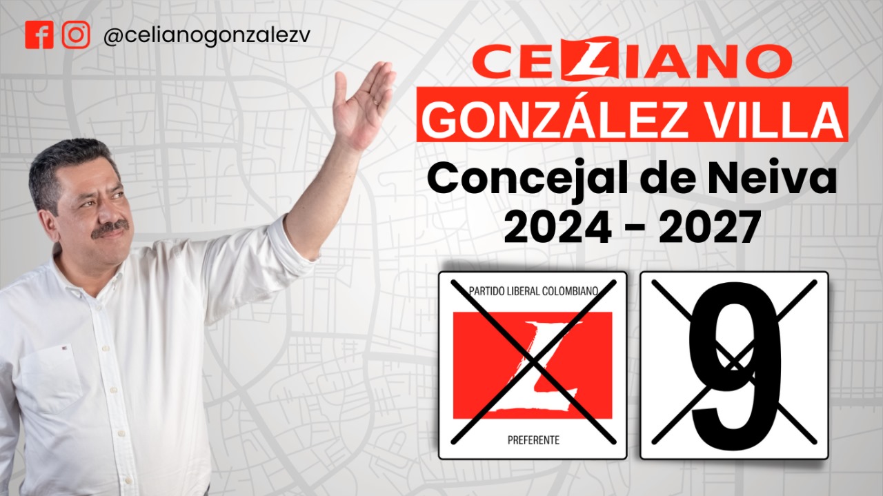 A pocos días de las elecciones regionales, el candidato al Concejo de Neiva por el Partido Liberal, 9 en el tarjetón, Celiano González Villa, reiteró su compromiso de trabajar desde esa corporación mediante la gestión y elaboración de las iniciativas que se requieran para que la capital del Huila sea un verdadero destino turístico, entre otros planteamientos.