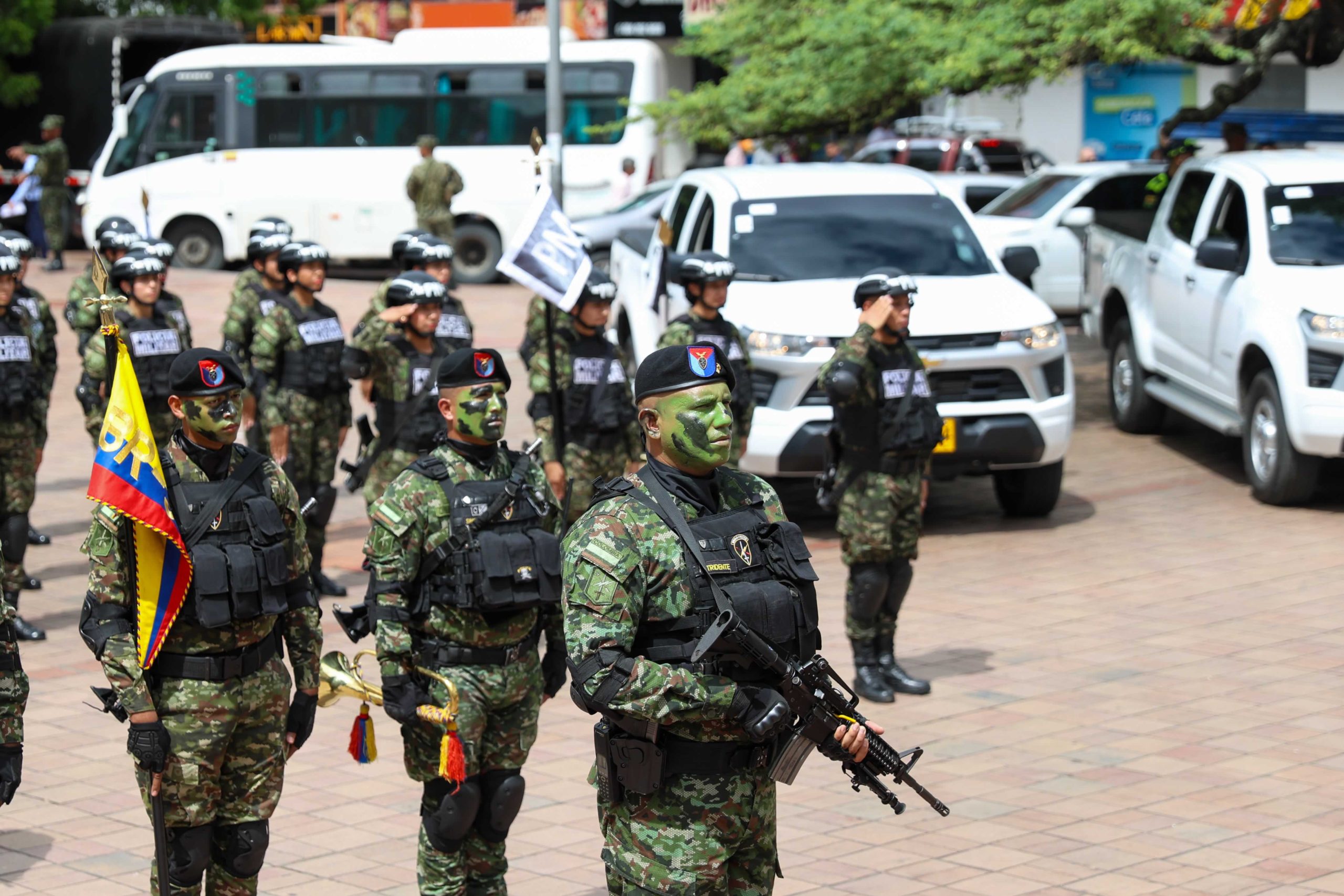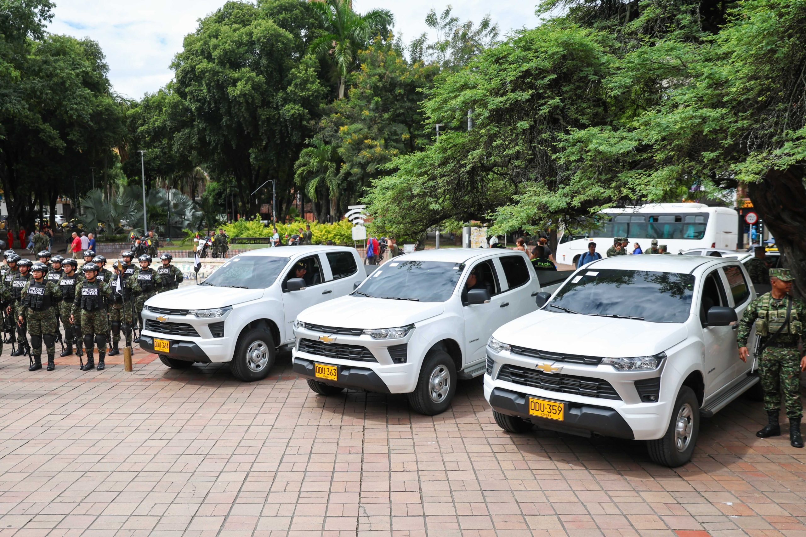 La reciente entrega incluyó tres camionetas para el Gaula Militar y 20 motocicletas de alto cilindraje, que fortalecerán las operaciones de los Batallones adscritos a la Novena Brigada del Ejército Nacional. Además, se sumaron equipos de acción integral para estrechar la relación con las comunidades, como saltarín, carpas e inflables que permitirán mayor acercamiento con los ciudadanos.