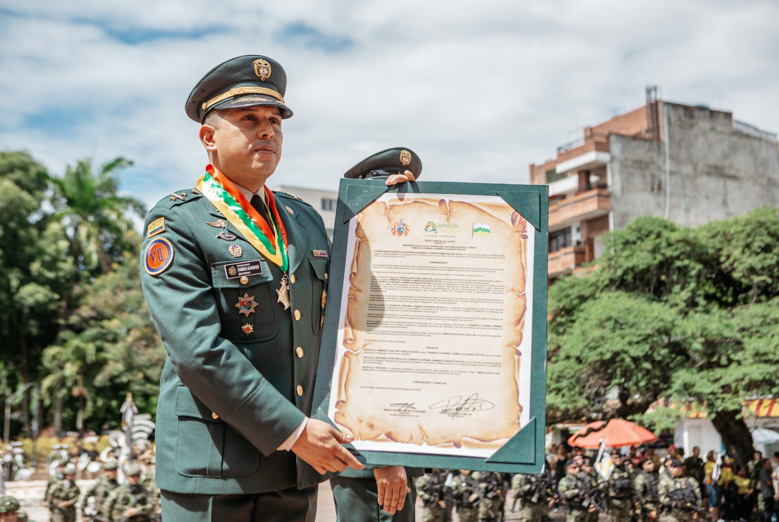 Bajo el liderazgo del señor Coronel Henry Herrera Arenas, comandante de la Novena Brigada, y con el acompañamiento del señor gobernador del Huila, Dr. Rodrigo Villalba Mosquera, el alcalde de Neiva, Germán Casagua Bonilla, y altos mandos de la Fuerza Pública, se impusieron condecoraciones a oficiales, suboficiales, soldados y civiles, por su disciplina, liderazgo, méritos en orden público, virtudes militares y tiempo de servicio.