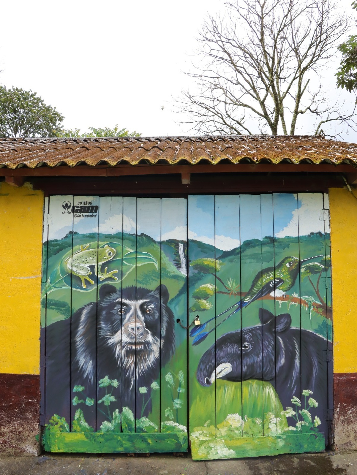 Del mismo modo, y como parte de la apropiación y reconocimiento de la importancia de la biodiversidad se apoyó al grupo de monitoreo en la elaboración de mural, en este plasmando especies significativas de la localidad, caso del oso andino, danta de montaña y rana de cristal; convirtiéndose en una herramienta de educación, sensibilización y apropiación.