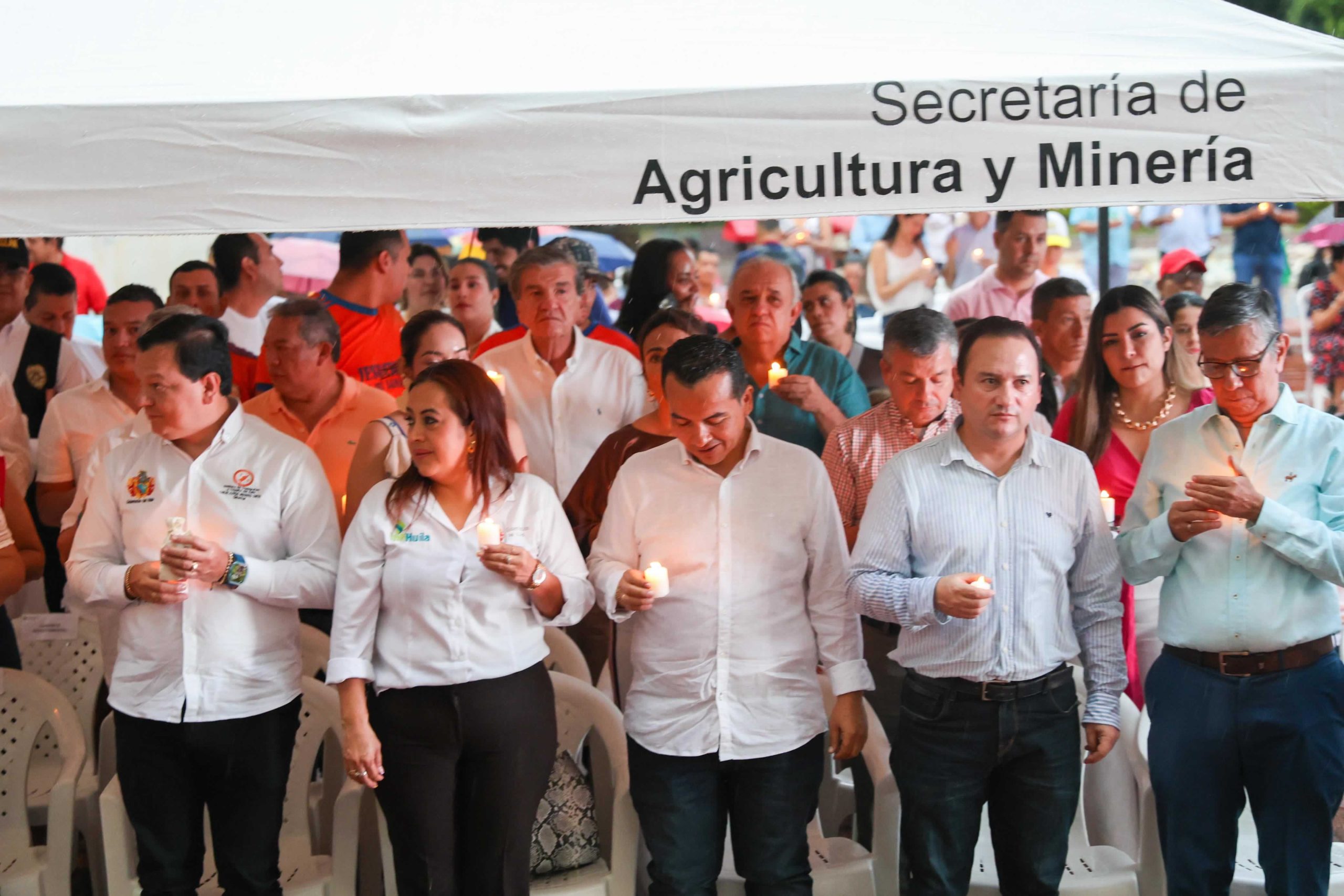 El mandatario huilense destacó que este acto no era únicamente protocolario, sino una manifestación profunda de voluntad colectiva: “Hoy, juntos, encendemos una luz; encendemos la esperanza de un país que quiere sanar, que se resiste a seguir dividido, que no acepta más odio, más violencia”.