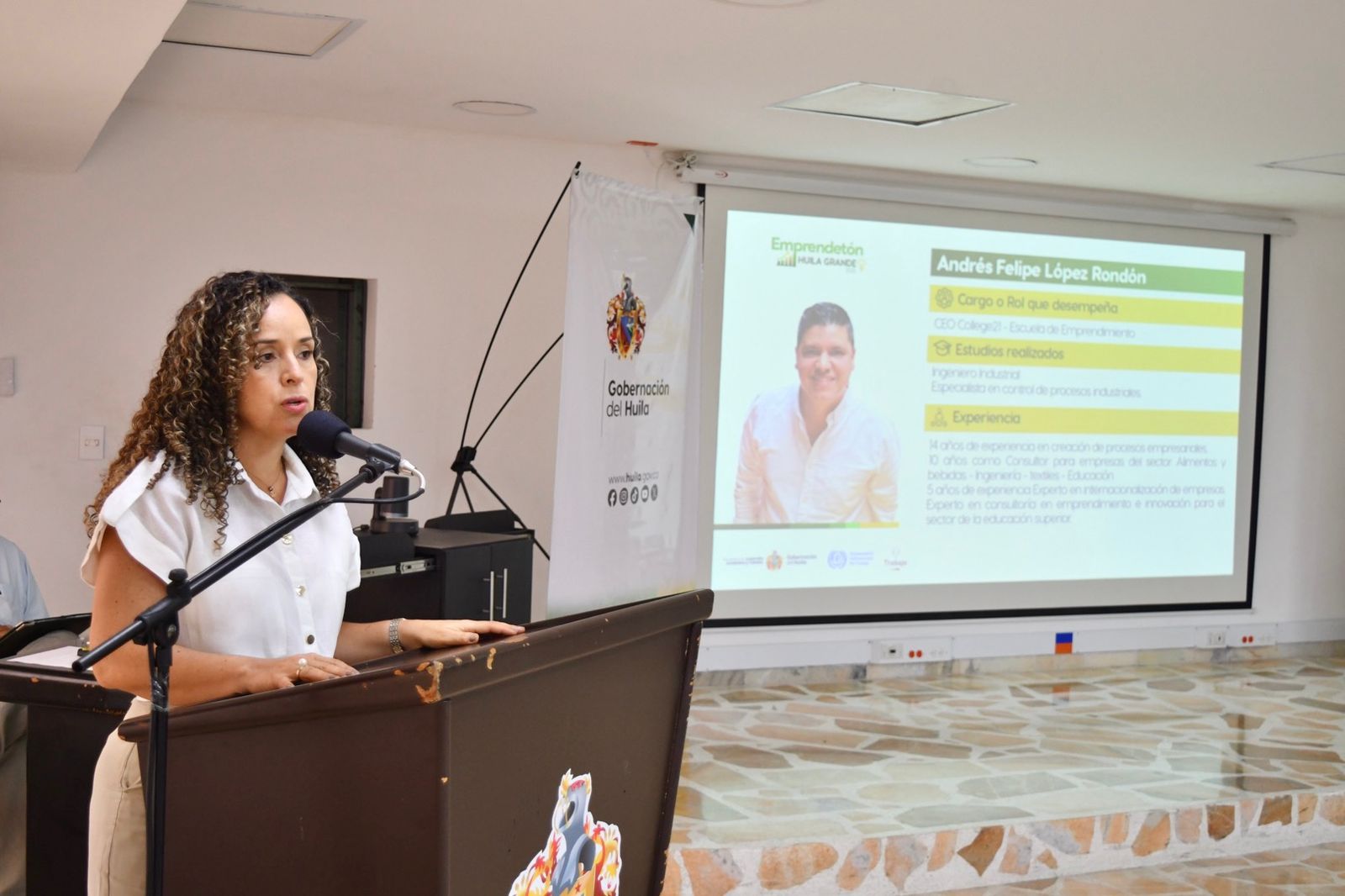La Emprendetón Huila Grande 2025 contará con la participación de expertos de alto nivel y empresarios huilenses como mentores y jurados, entre ellos: Ángela Herrera (OIT Colombia), Mateo Monroy (MinTrabajo Huila), Julián Berrío (SUNNY APP) y Andrés Felipe López (College21).