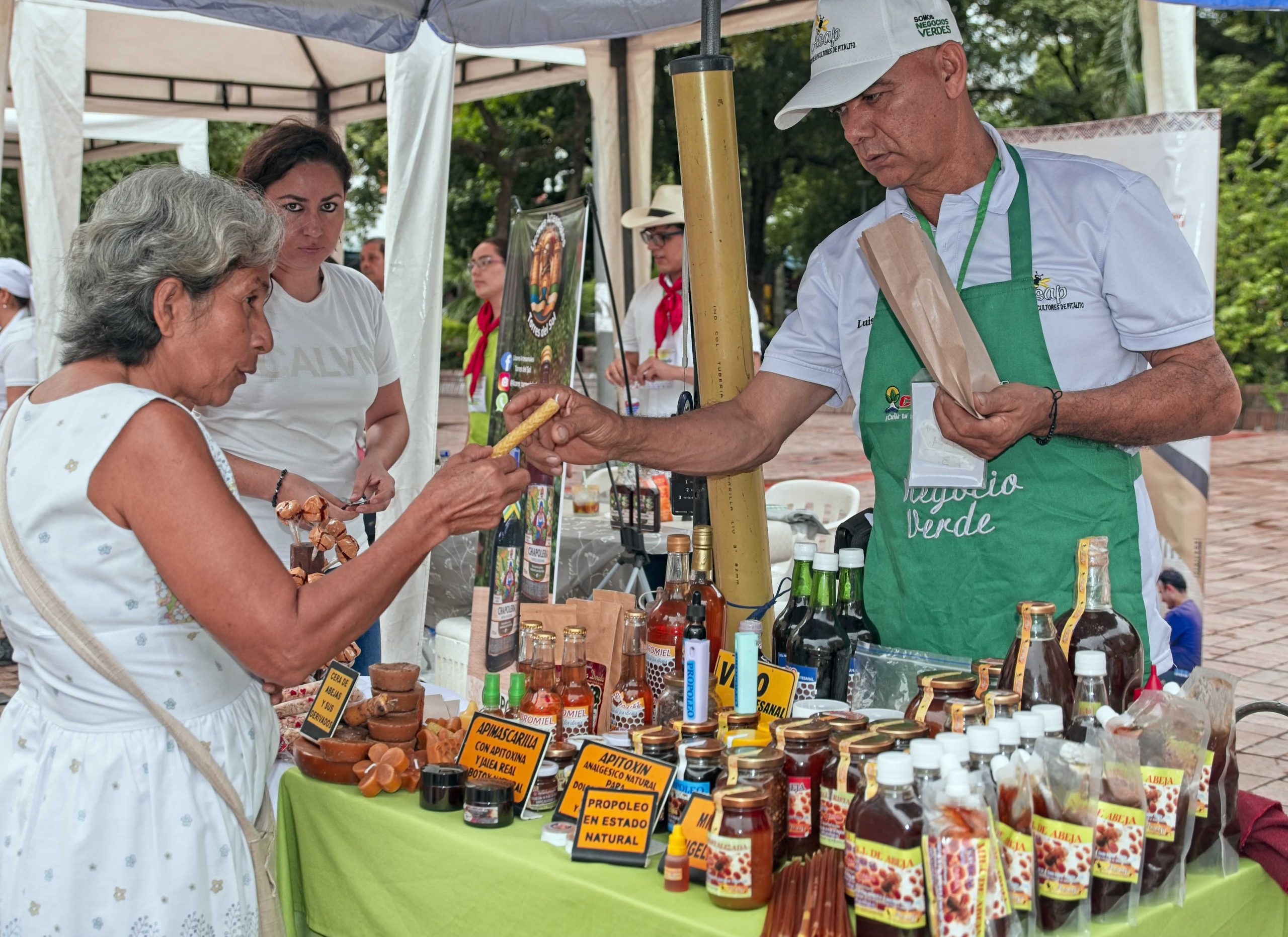 Este espacio contó con una variada oferta de productos como arveja, plátano, café, panela, tomate de mesa, pollo campesino, huevos criollos, chocolate, aguacate, miel de abejas, frutas, y productos elaborados como quesos asados, quesillos, yogurt griego, mistela, rellenas de choclo, panes, tortas, bebidas ancestrales del Pacífico, conservas de vegetales, y hasta asado huilense.
