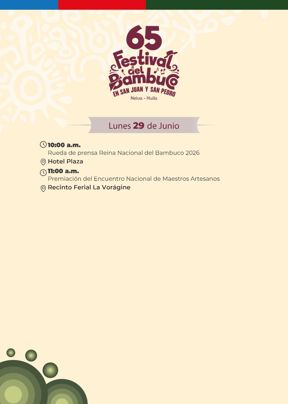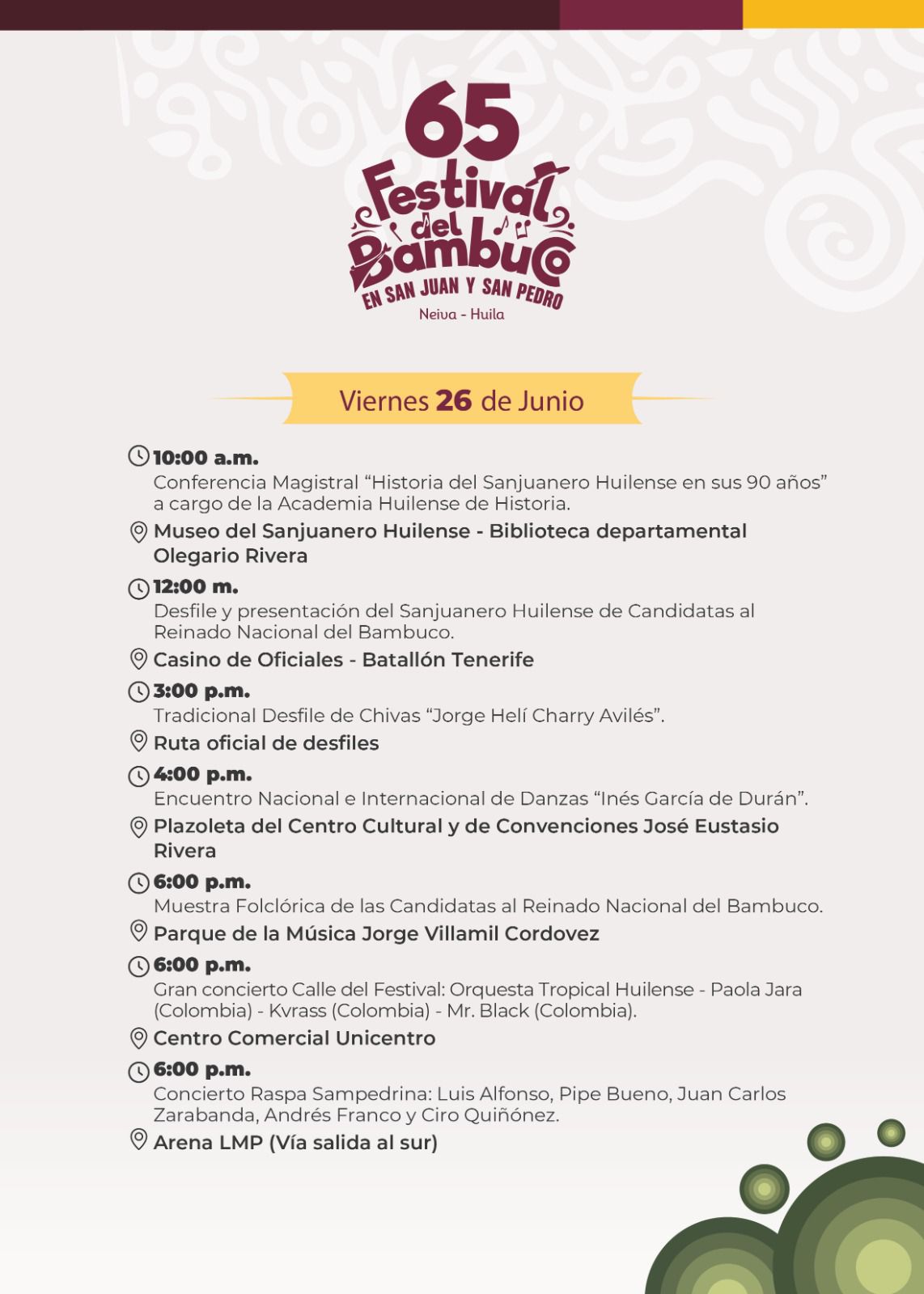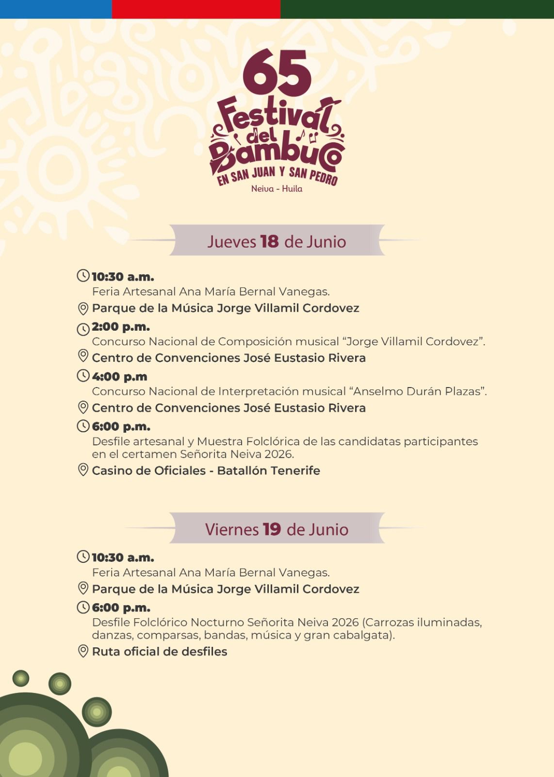 Esta es nuestra Programación Oficial del 65º Festival del Bambuco en San Juan y San Pedro para el 2026