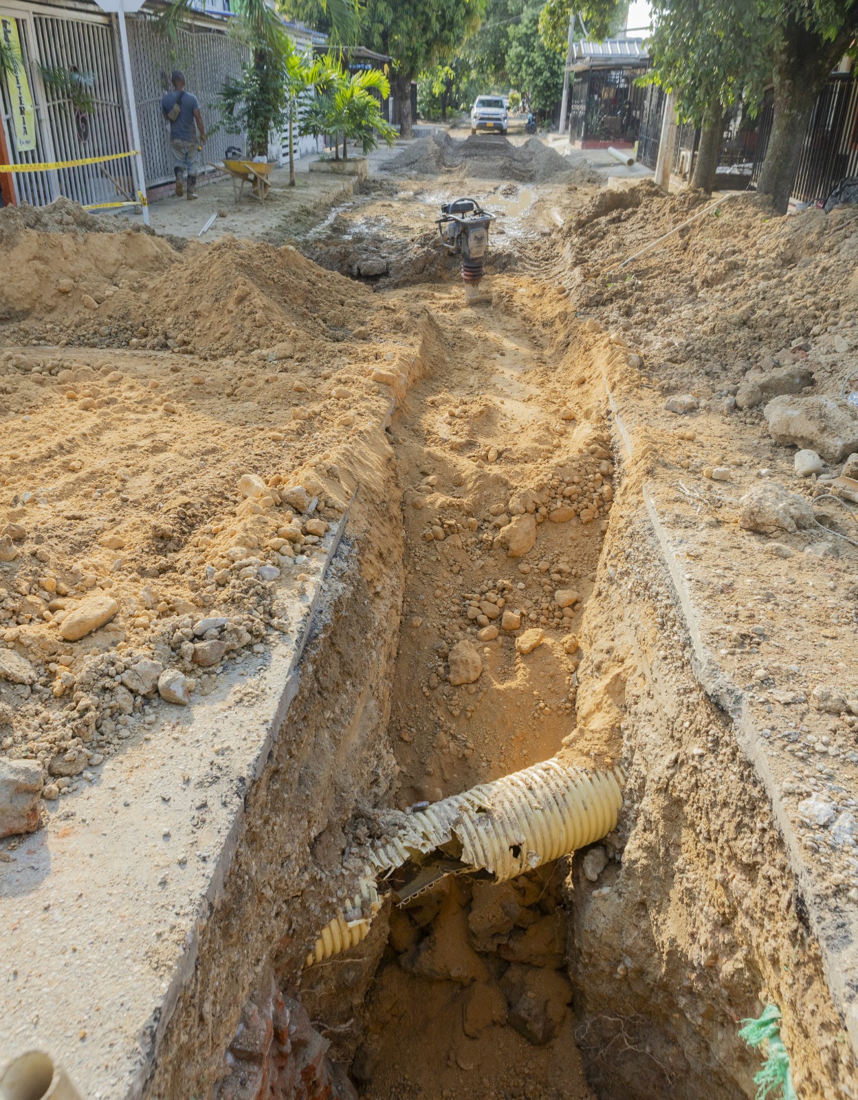 Con dos frentes de trabajo activos, se reporta un 25% de avance en la instalación simultánea de redes de alcantarillado sanitario y acueducto. Estas labores son fundamentales para asegurar la cobertura y presión óptima en el suministro de agua al sector.