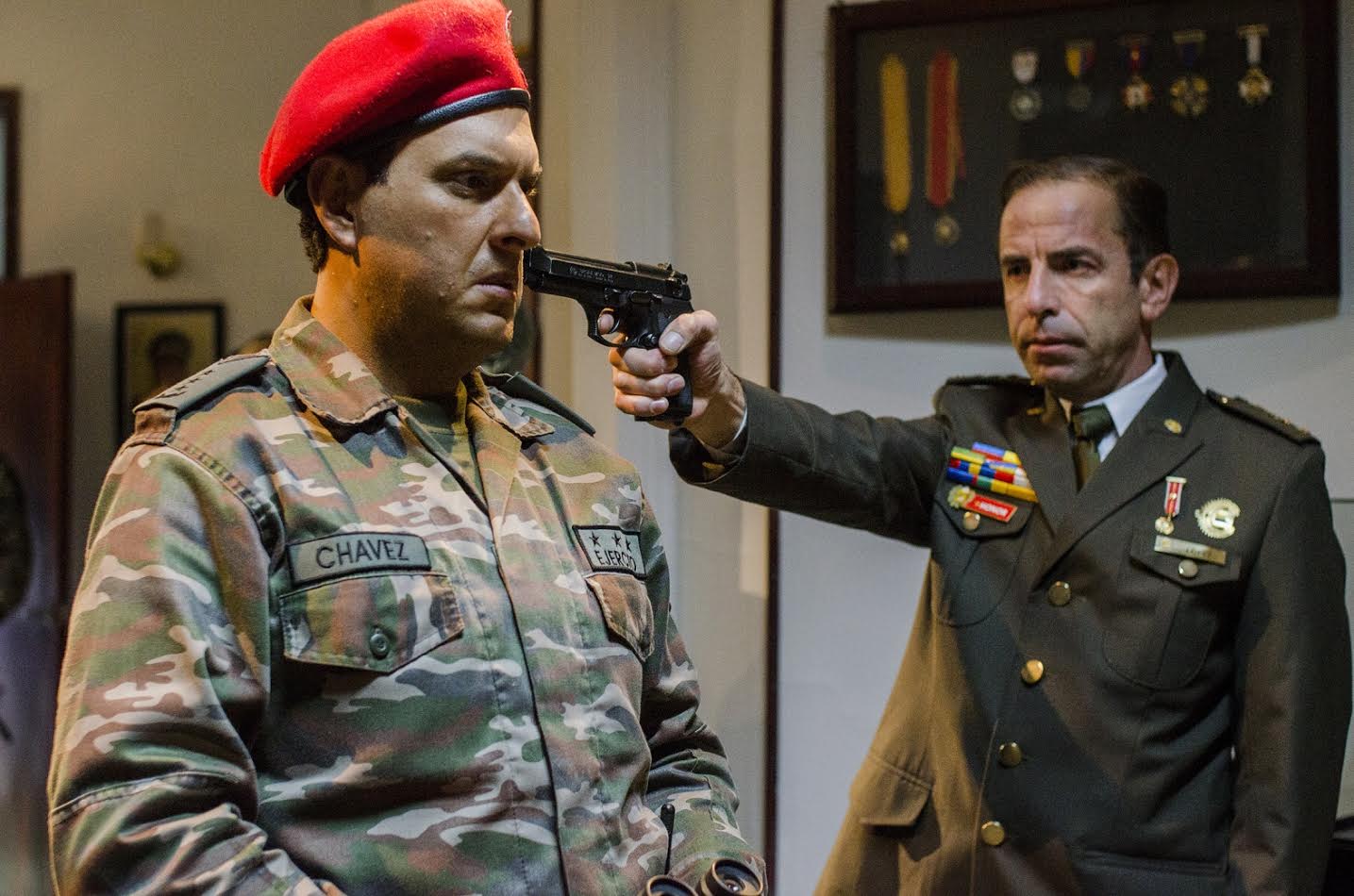 Hugo Chávez es interpretado por el actor colombiano Andrés Parra, quien descolló en el rol de Anestesia en la serie El Cartel. También fue muy reconocido su protagónico en la serie Escobar, el patrón del mal. Con gran recorrido en cine, como por ejemplo La pasión de Gabriel, Parra ha recibido múltiples reconocimientos, entre ellos tres premios India Catalina y tres premios TV y Novelas como mejor actor.