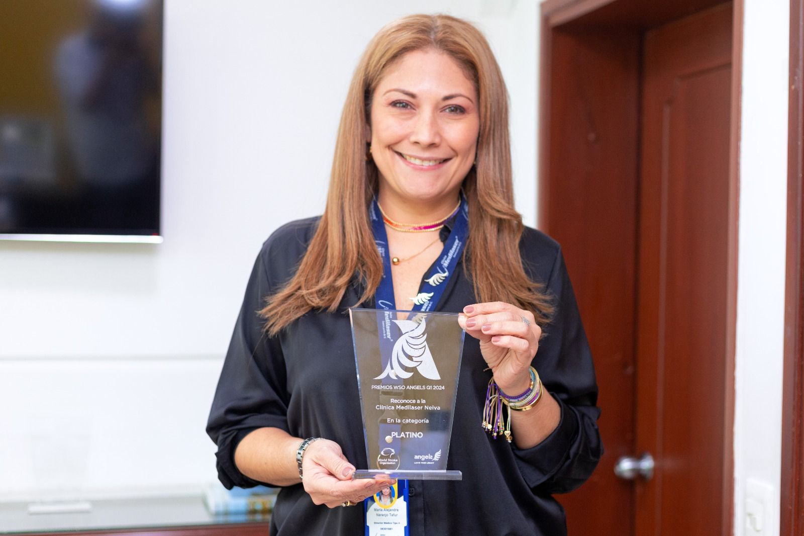 El galardón 2024 tiene un componente muy especial, y es que, en menos de cuatro meses, la Clínica aumentó la cobertura y mejoró aún más los tiempos de atención de pacientes que sufren de un momento a otro esta patología. Por esta razón, pasamos del Gold Status 2023 al WSO Angels 2024, nivel PLATINO. La doctora Andrea Torres Narváez, consultora Angels en Colombia, fue la encargada de entregar este reconocimiento en Neiva.