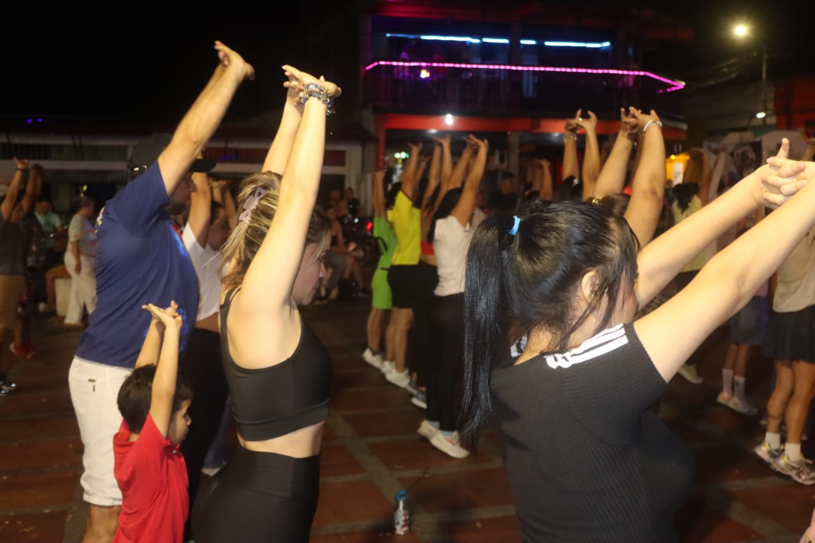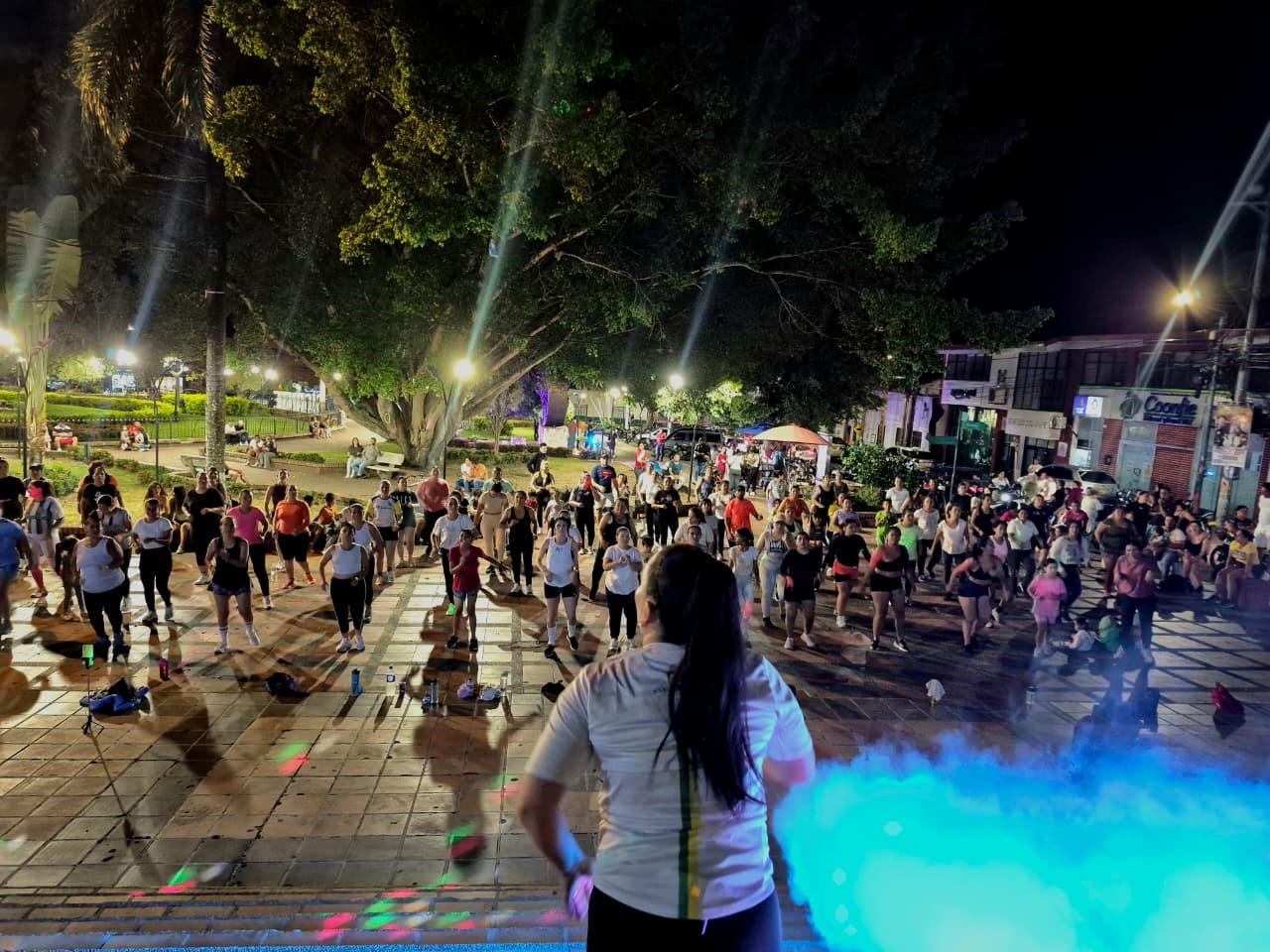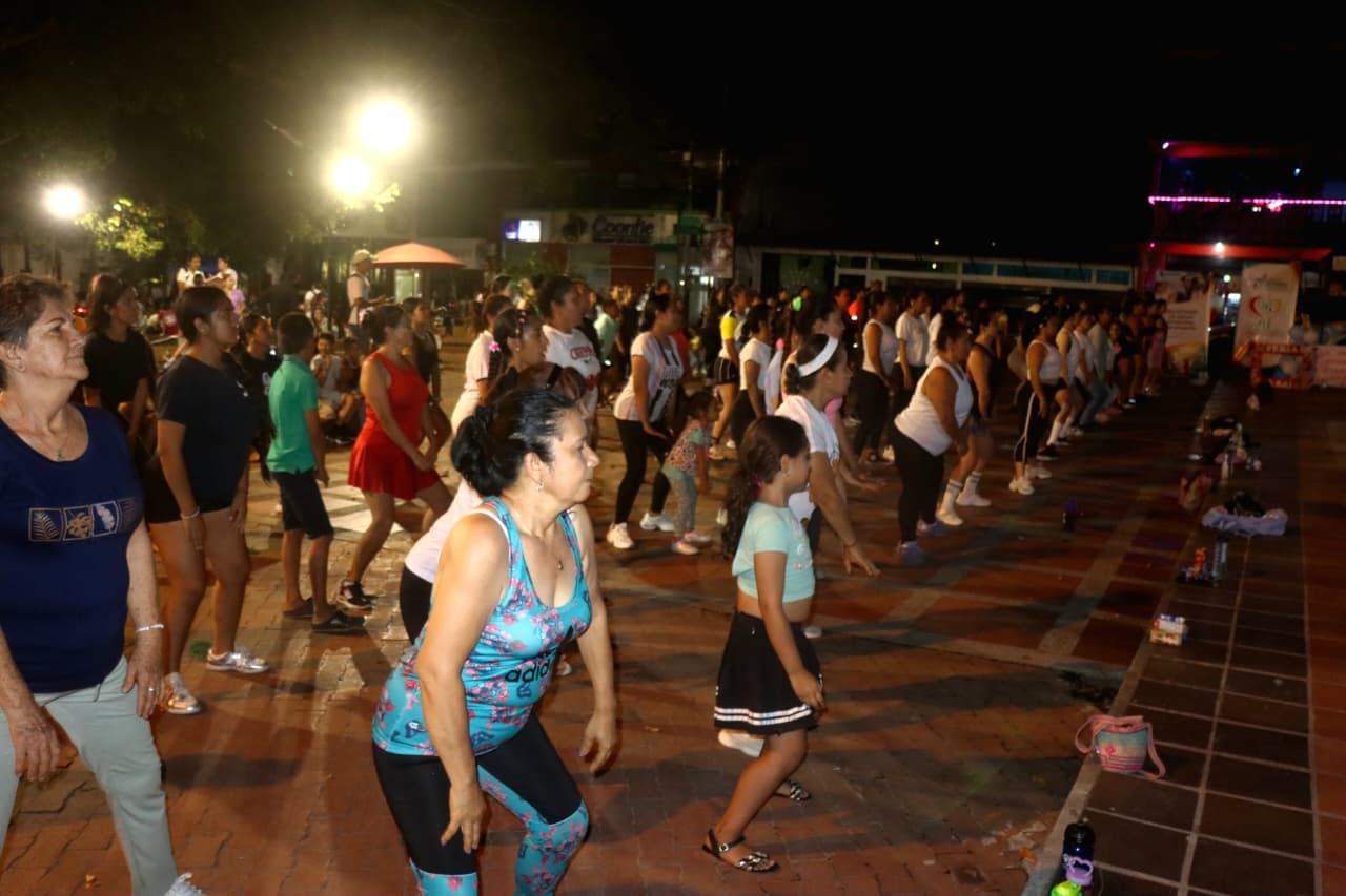 Con una masiva participación de niños, jóvenes, mujeres, adultos y adultos mayores, la comunidad giganteña disfrutó de una noche de rumba aeróbica.
