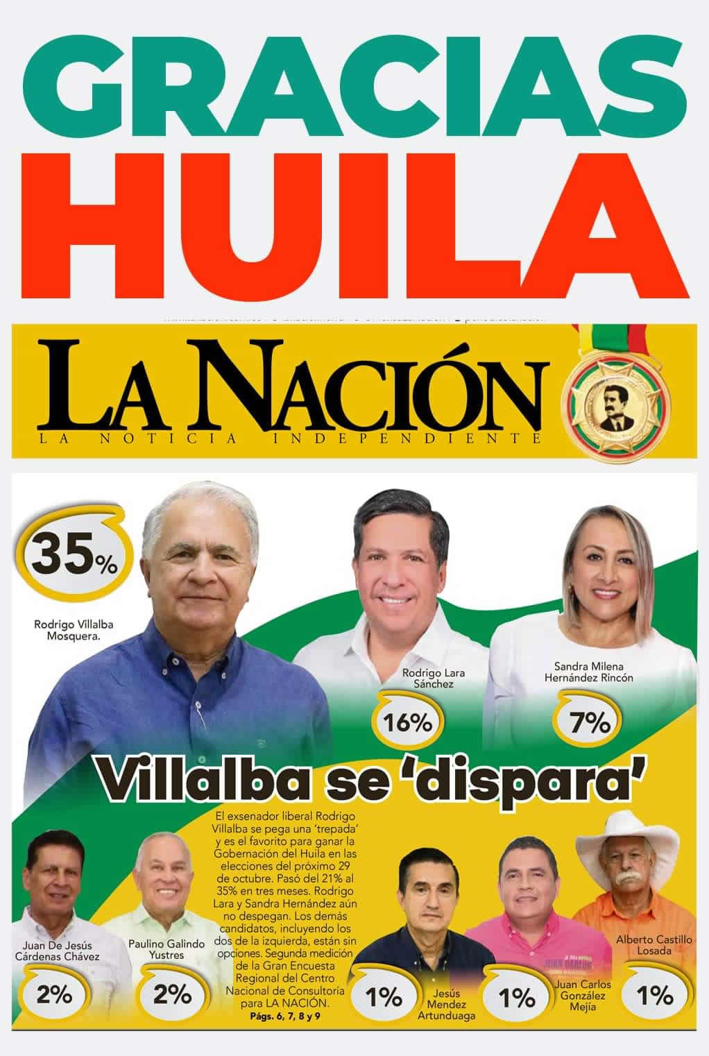 “Los resultados de la encuesta electoral realizada por el Centro Nacional de Consultoría para el Diario La Nación, nos llenan de alegría al confirmar que una vez más los huilenses nos otorgan su confianza al situarnos en el primer lugar de la intención de voto.