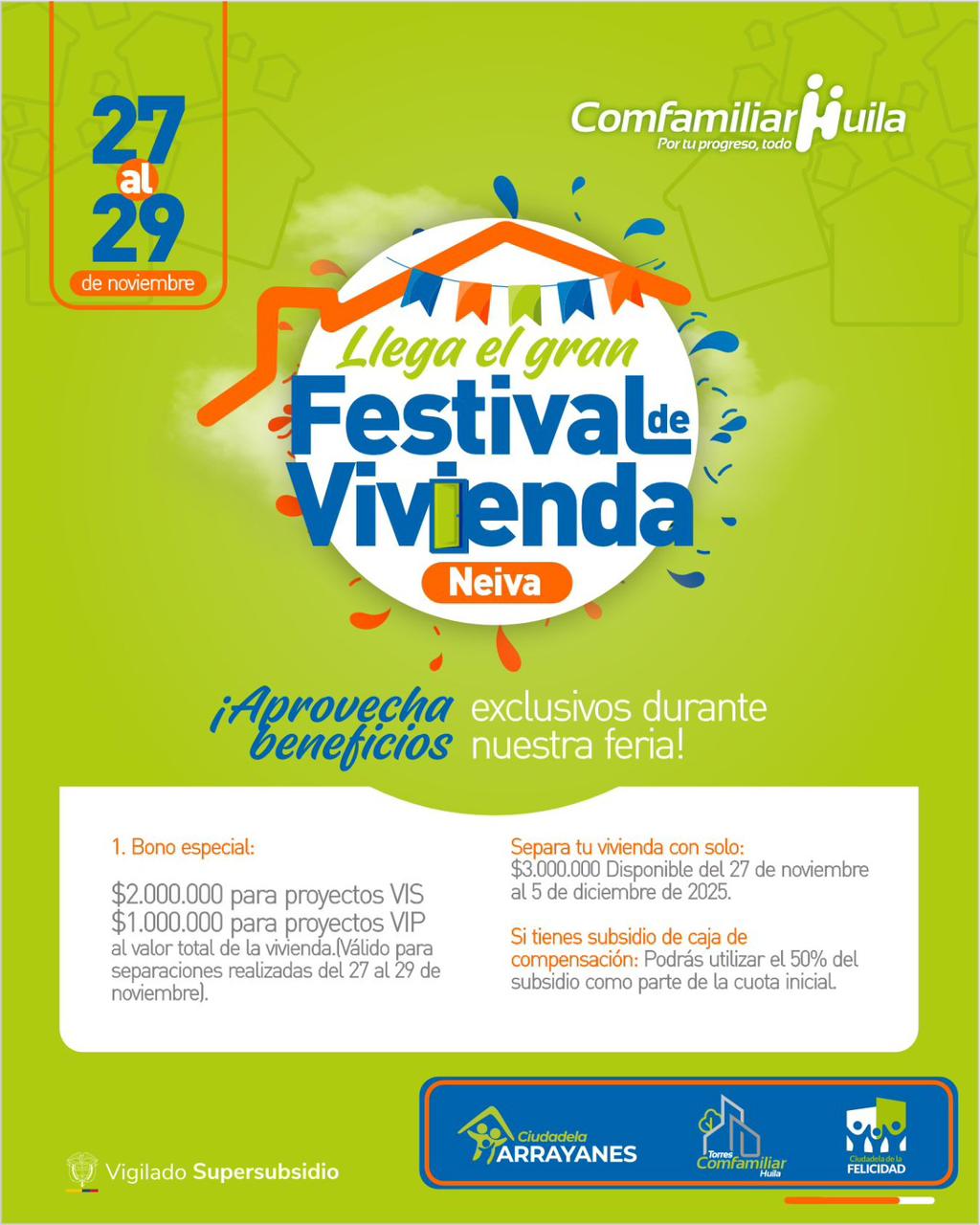 Comfamiliar Huila invita a todas las familias a participar y aprovechar estos beneficios exclusivos del Festival de Vivienda 2025.