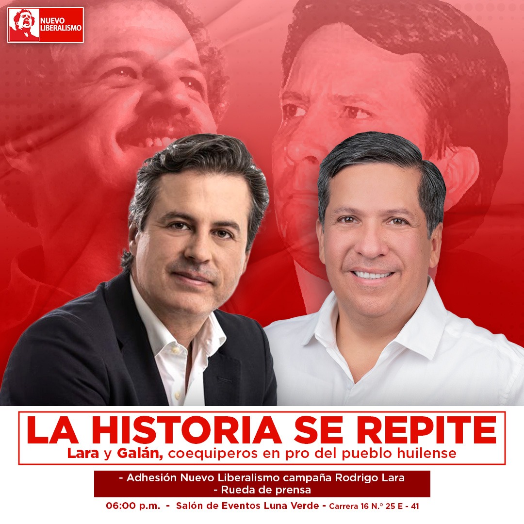 Es así como a las 6:00 en el salón de eventos sociales Luna Verde se oficializará la adhesión del Partido Nuevo Liberalismo a la candidatura de Rodrigo Lara Sánchez.