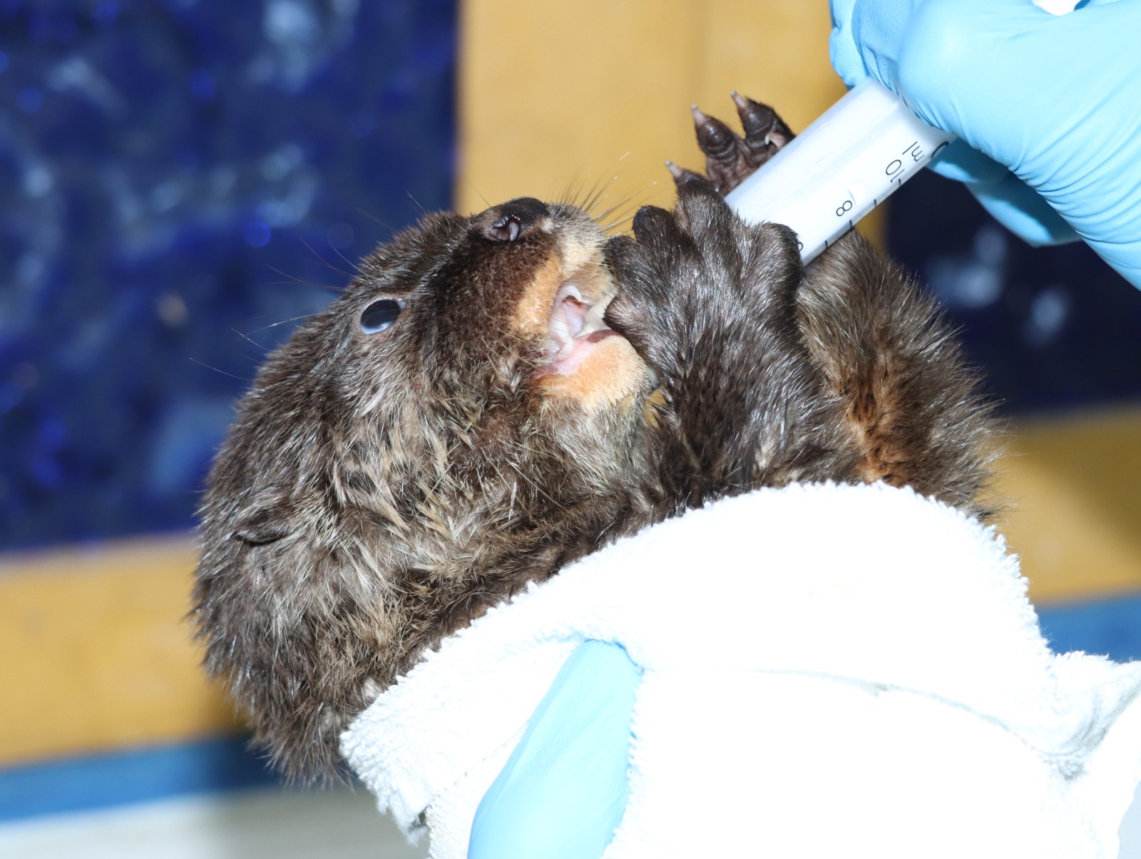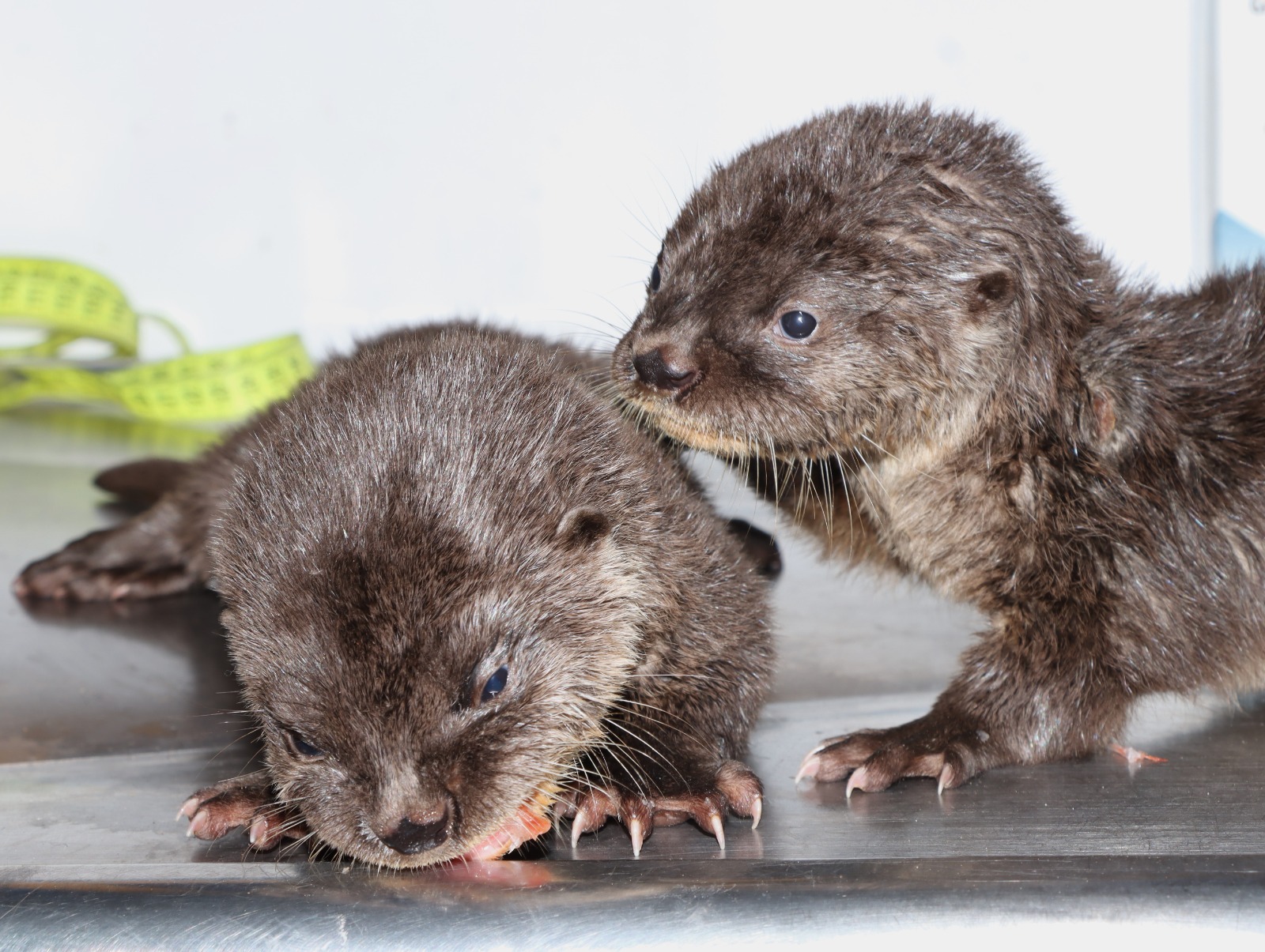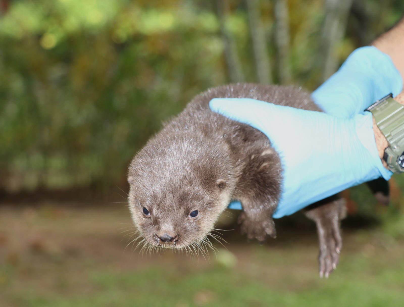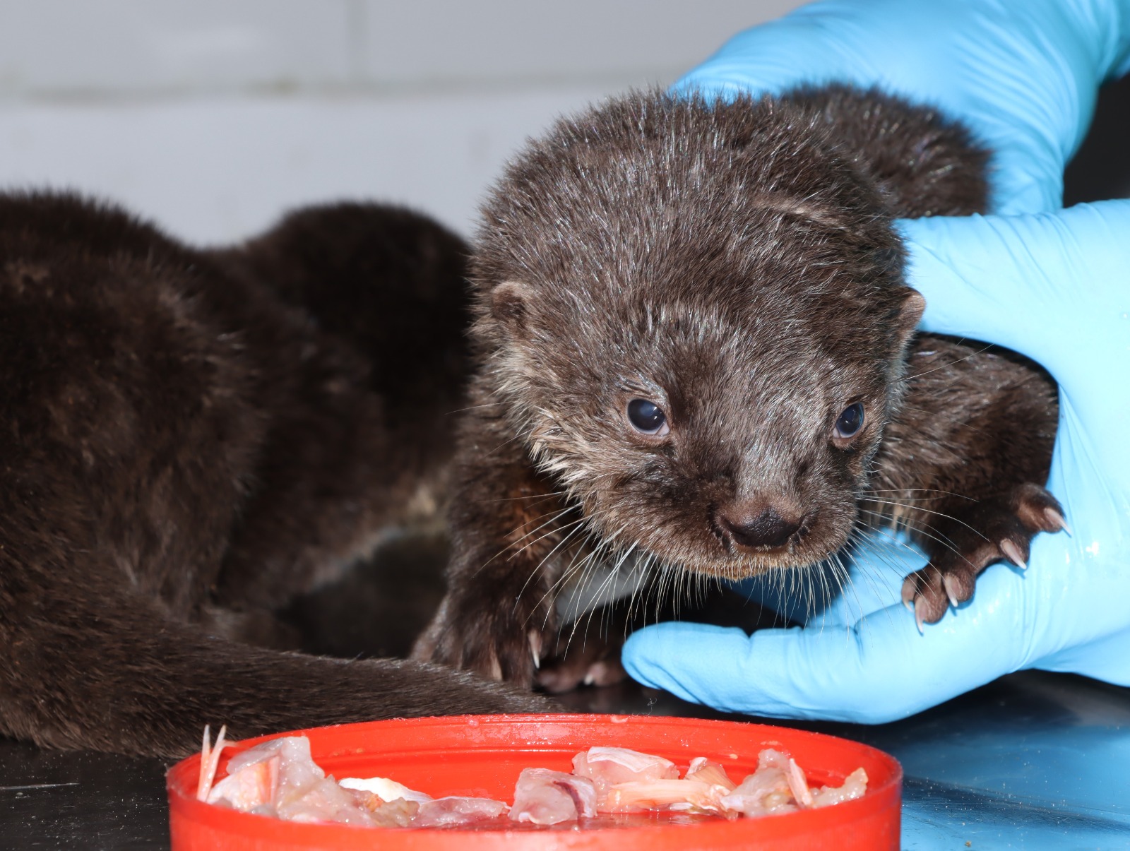 Una de las crías de nutria ingresó en estado crítico de salud, presentando múltiples mordeduras provocadas por un perro doméstico. Gracias a la atención veterinaria oportuna y a un manejo especializado, el ejemplar logró recuperarse exitosamente.