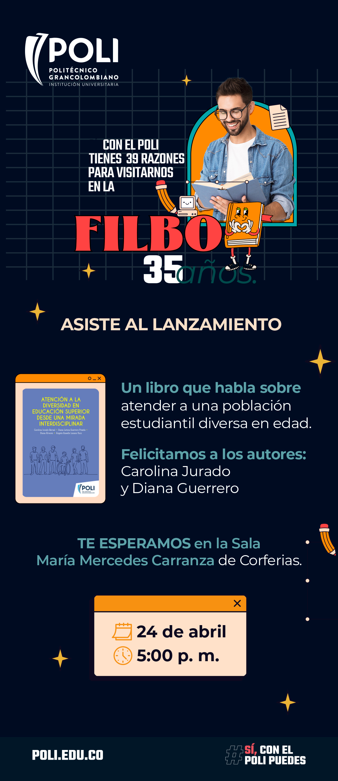 El Politécnico Grancolombiano, consciente de los retos de atender a una población estudiantil diversa en edad, historia de vida, niveles de ingreso, antecedentes educativos, género, etnia y localización geográfica; publicó el primer libro sobre diversidad en el sector, titulado ‘Atención a la diversidad en educación superior desde una mirada interdisciplinar’, que será presentado en la Feria Internacional del Libro de Bogotá (FILBo) el 24 de abril, a las 5:00 p.m., en la Sala María Mercedes Carranza de Corferias.