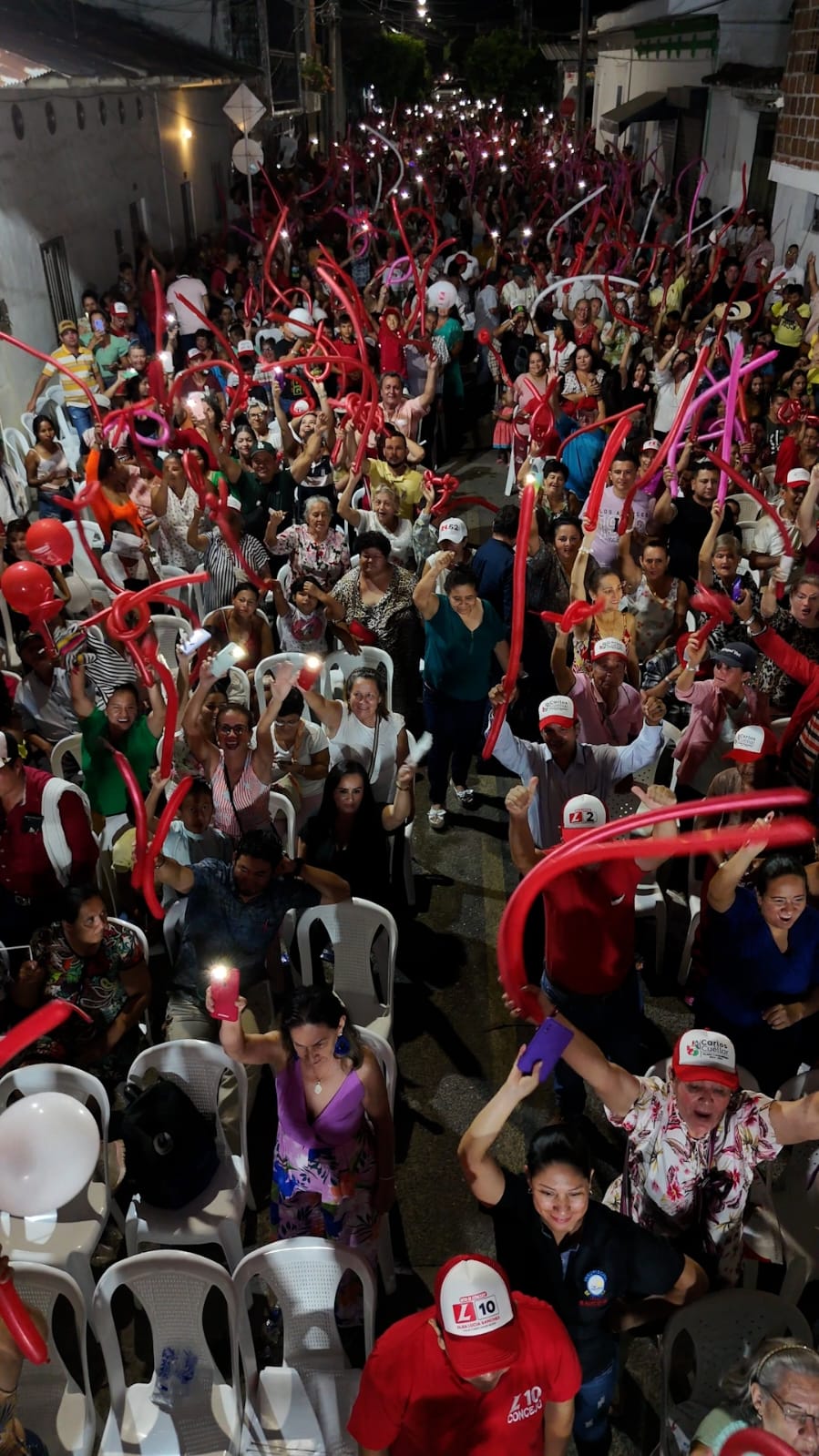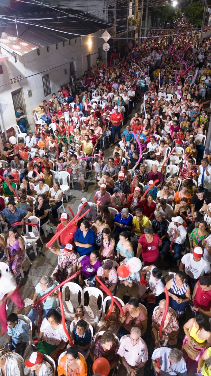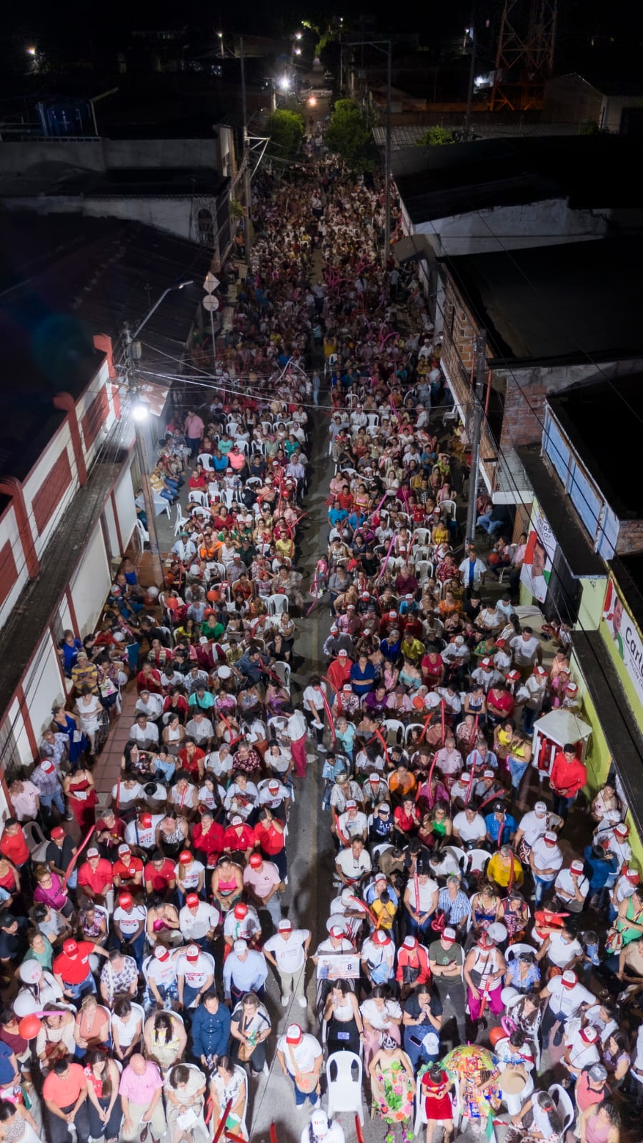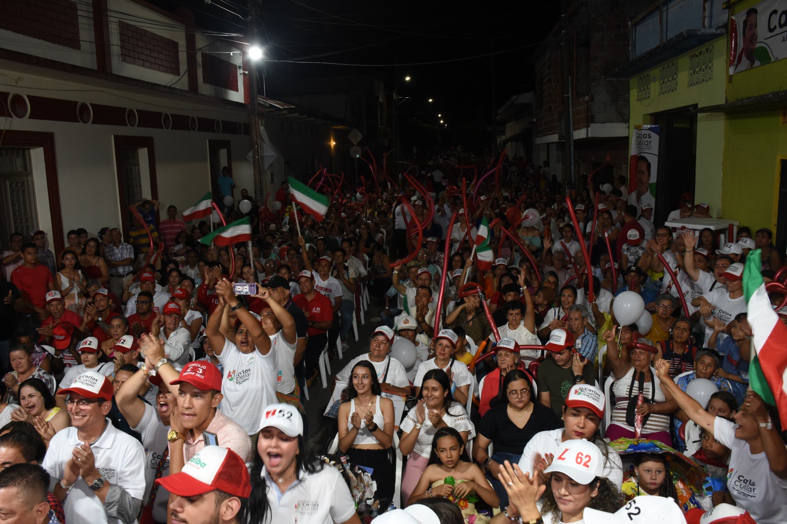 La Calle 20 entre las carreras Octava y Novena de Campoalegre estuvo a reventar y literalmente “La Plaza Roja del Huila” como se le conoce al municipio de Campoalegre, se hizo escuchar al gritar en una sola voz: Carlos Cuéllar alcalde.