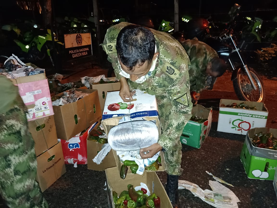 La acción se logró en la vereda La Galda, allí entre soldados y policías, realizaron un registro minucioso. Ocultos en una carga de pimentones que era transportada en un vehículo tipo camión, fueron hallados 178 paquetes de diferentes tamaños, envueltos en cintas plásticas de diferentes colores.
