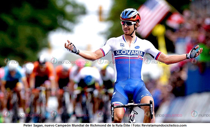 Peter Sagan dictó cátedra en el cierre del Mundial de Richmond y se convirtió en el nuevo campeón de la Ruta Élite. El eslovaco vestirá la camiseta arcoíris durante el 2016. La medalla de plata fue para Michael Matthews de Australia y Ramunas Navardauskas de Lituania subió al podio a reclamar el bronce. Rigoberto Urán fue protagonista sobre el final del exigente recorrido de 259 kilómetros. El paisa ocupó al final la casilla 32 a 18 segundos.