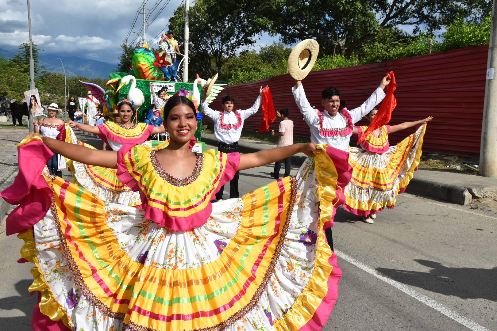 El desfile se vivió con alegría, música y tradición, gracias a la participación de comparsas, bandas y agrupaciones folclóricas que contagiaron a propios y visitantes con el espíritu del bambuco, con familias que llegaron de ciudades como Pasto y Bogotá.