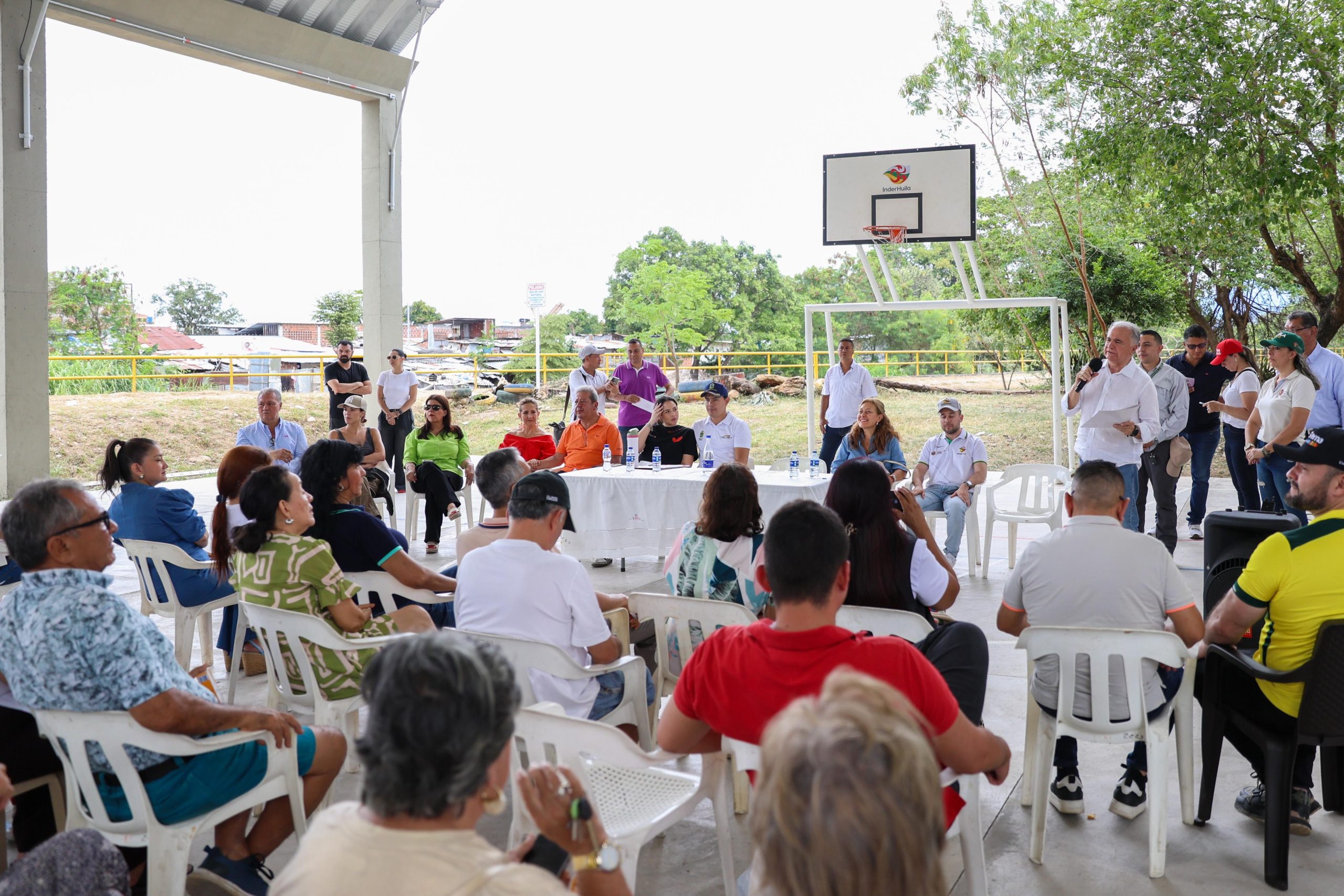 El evento contó con la presencia del gobernador del Huila, Rodrigo Villalba Mosquera, quien expresó su satisfacción por la culminación de este importante proyecto de infraestructura deportiva, agradeciendo a todos los actores que hicieron posible su ejecución: desde el exgobernador Luis Enrique Dussán, el alcalde de Neiva Germán Casagua, hasta los presidentes de juntas de acción comunal, concejales, diputados, contratistas y líderes comunitarios.