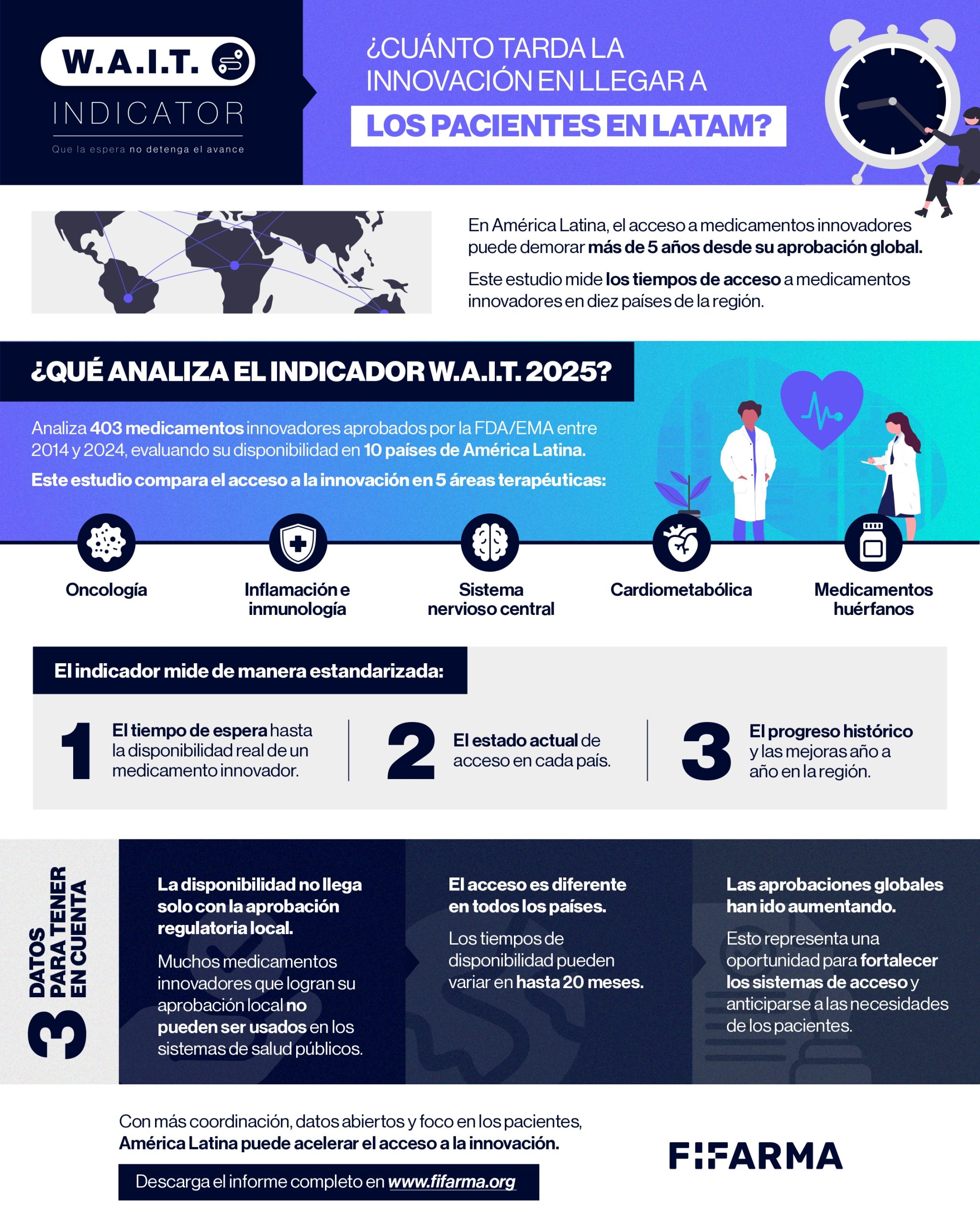 Un estudio, que analiza la disponibilidad y accesibilidad de medicamentos innovadores en diez países de América Latina, cubriendo más del 80 % de la población de esta región: Argentina, Brasil, Chile, Colombia, Costa Rica, República Dominicana, Ecuador, México, Panamá y Perú reveló que los pacientes deben esperar entre 5 y 6 años para acceder a un medicamento innovador tras haber sido aprobado por una agencia de referencia internacional.