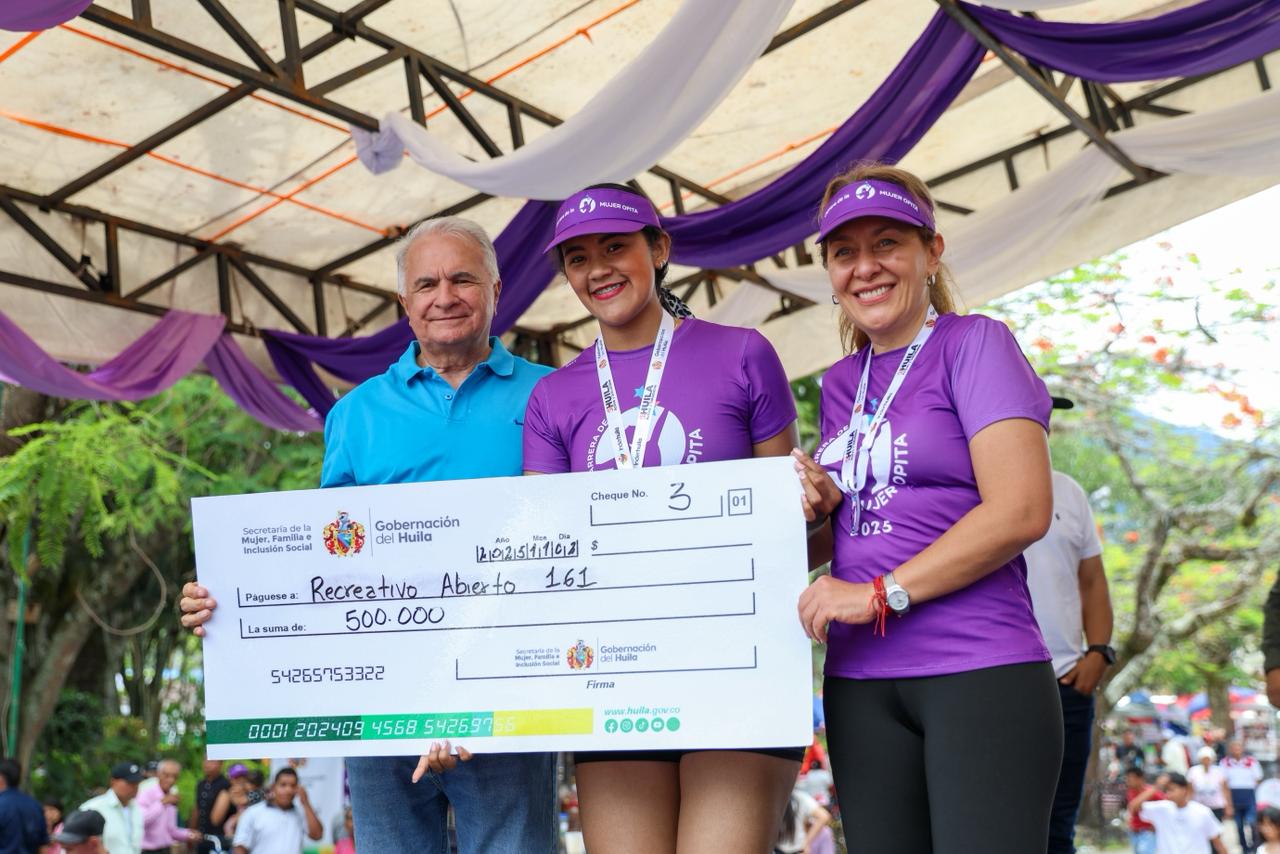 El evento, organizado por la Gobernación del Huila a través de la Oficina para la Mujer, la Familia y la Inclusión Social, contó con el apoyo de la Alcaldía de La Plata y la articulación de las gestoras sociales municipales, que se sumaron para hacer de esta carrera un espacio de encuentro, recreación y bienestar para todas.