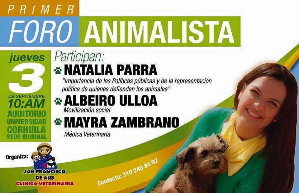 Éste jueves 3 de septiembre se realizará en Neiva el primer Foro Animalista, con la participación de Natalia Parra Osorio, excandidata al Senado de la República, quien actualmente promueve la consulta antitaurina.
