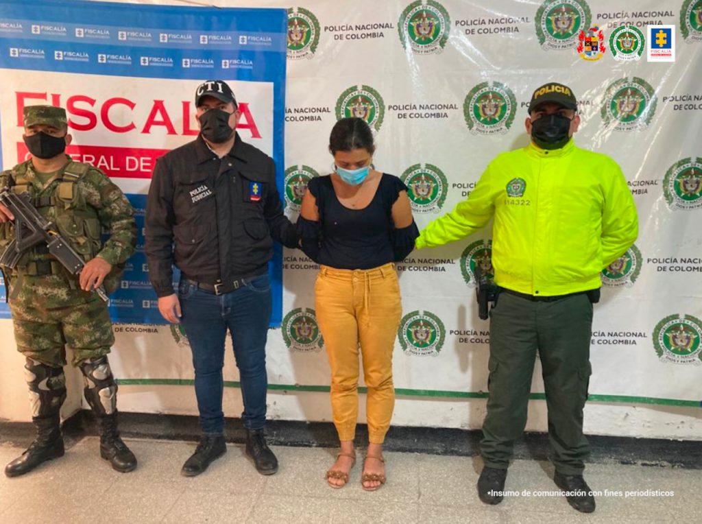 Su captura se llevó a cabo en vía púbica del Barrio Madelena, de Pitalito(Huila), por parte de unidades del CTI, el Ejército y la Policía. La imputada no aceptó cargos.