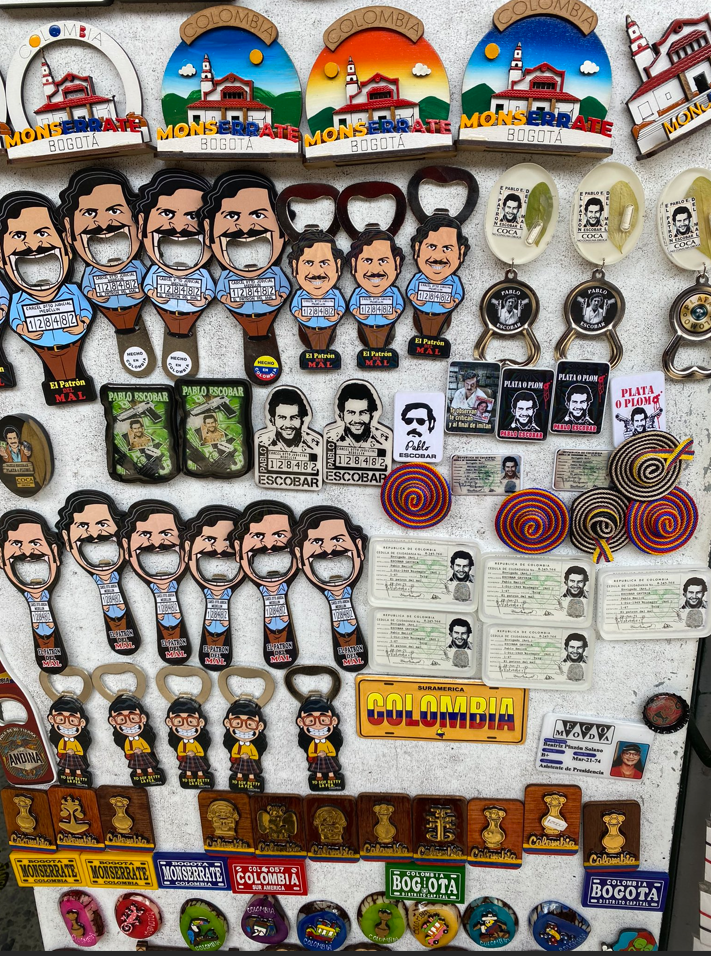 Llaveros, camisetas, gorras y hasta imágenes de su cédula hacen parte del ramillete de “recuerdos” o souvenirs. Incluso, hay tours para visitar sus propiedades y hasta hace poco se erigía en Medellín un museo levantado por la familia de “el Patrón”.