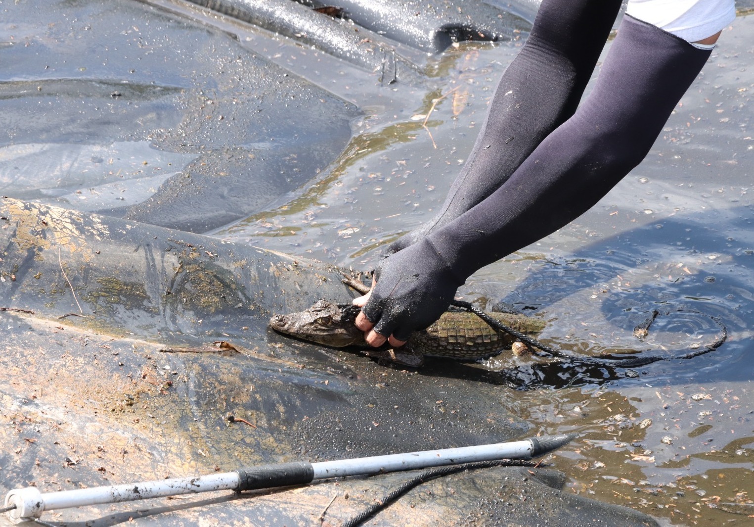 “Una vez evidenciada la situación, entramos al depósito de aguas lluvias para extraer manualmente las babillas, capturarlas y trasladarlas a un lugar más adecuado ya que allí no tenían ningún tipo de alimento”, recalcó el médico veterinario, quien agregó que debido a su estado corporal se evidenciaba que algunas llevaban más de 15 días estancadas.