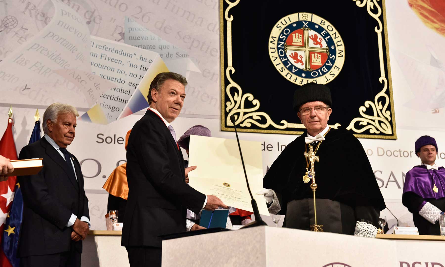 Nueva Economía Fórum ha otorgado a la República de Colombia, en la persona de su Presidente, Juan Manuel Santos, su galardón correspondiente al presente año “en reconocimiento de la Sociedad Española al pueblo colombiano por su larga y profunda amistad y cooperación con España, en los ámbitos económico, social y político. Al mismo tiempo, expresa el merecido reconocimiento al Presidente de la República de Colombia por sus esfuerzos y los de la sociedad colombiana para lograr la tan deseada paz y afrontar los retos futuros de desarrollo económico y social”.