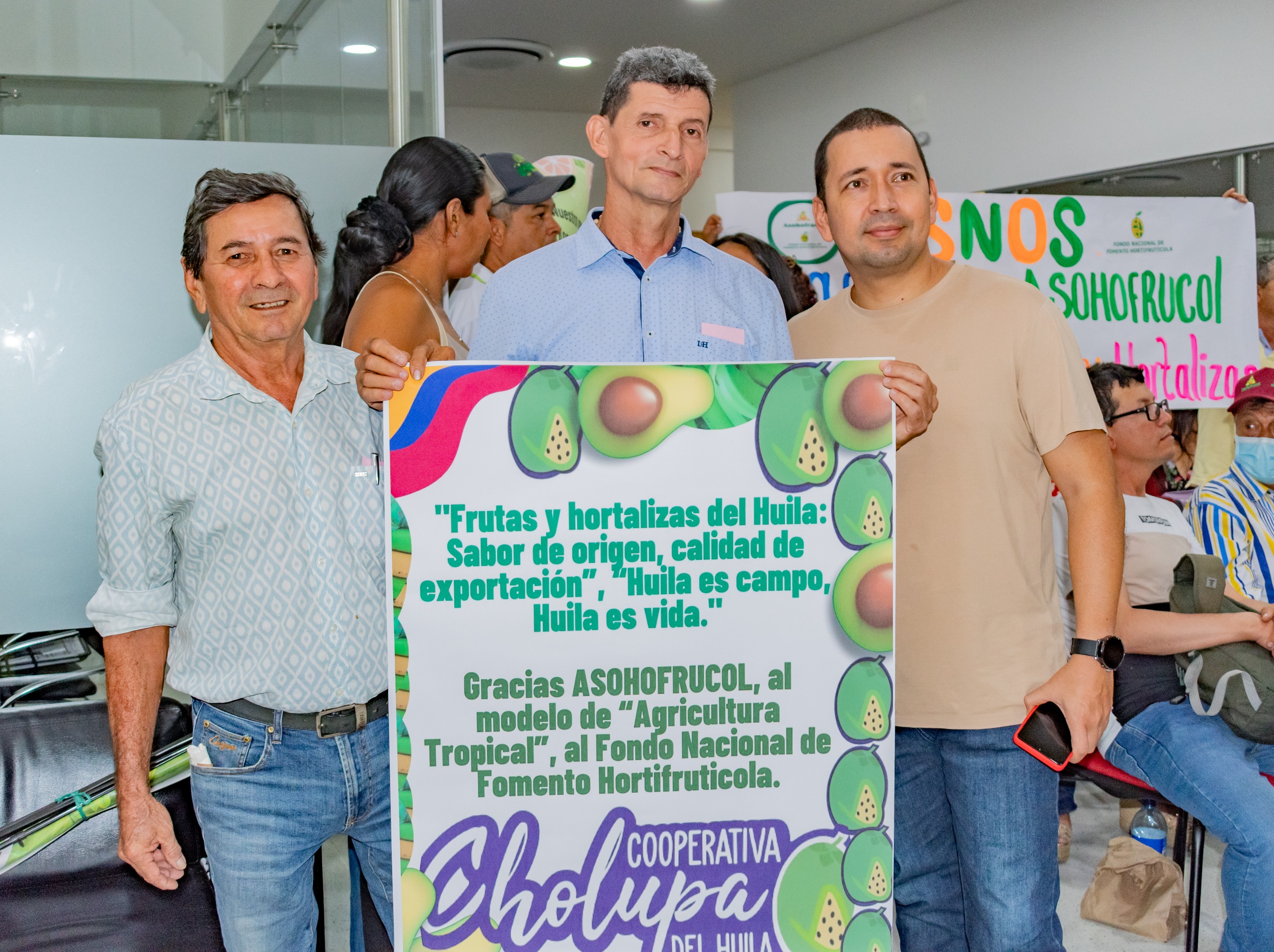 “Este tipo de escenarios es muy importante para nosotros los productores del departamento del Huila porque podemos visionar hacia donde vamos y cuáles son las necesidades de los productores tanto de frutas como de hortalizas. Nosotros hemos avanzado mucho de la mano de Asohofrucol con los recursos del Fondo Nacional Hortofrutícola, le hemos aportado a las certificaciones, sello orgánico tanto para Europa como para Estados Unidos, sello Global Gap, para lograr una comercialización internacional y mejorar la calidad de vida de nuestros productores”.