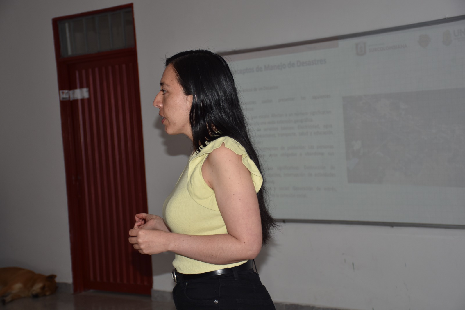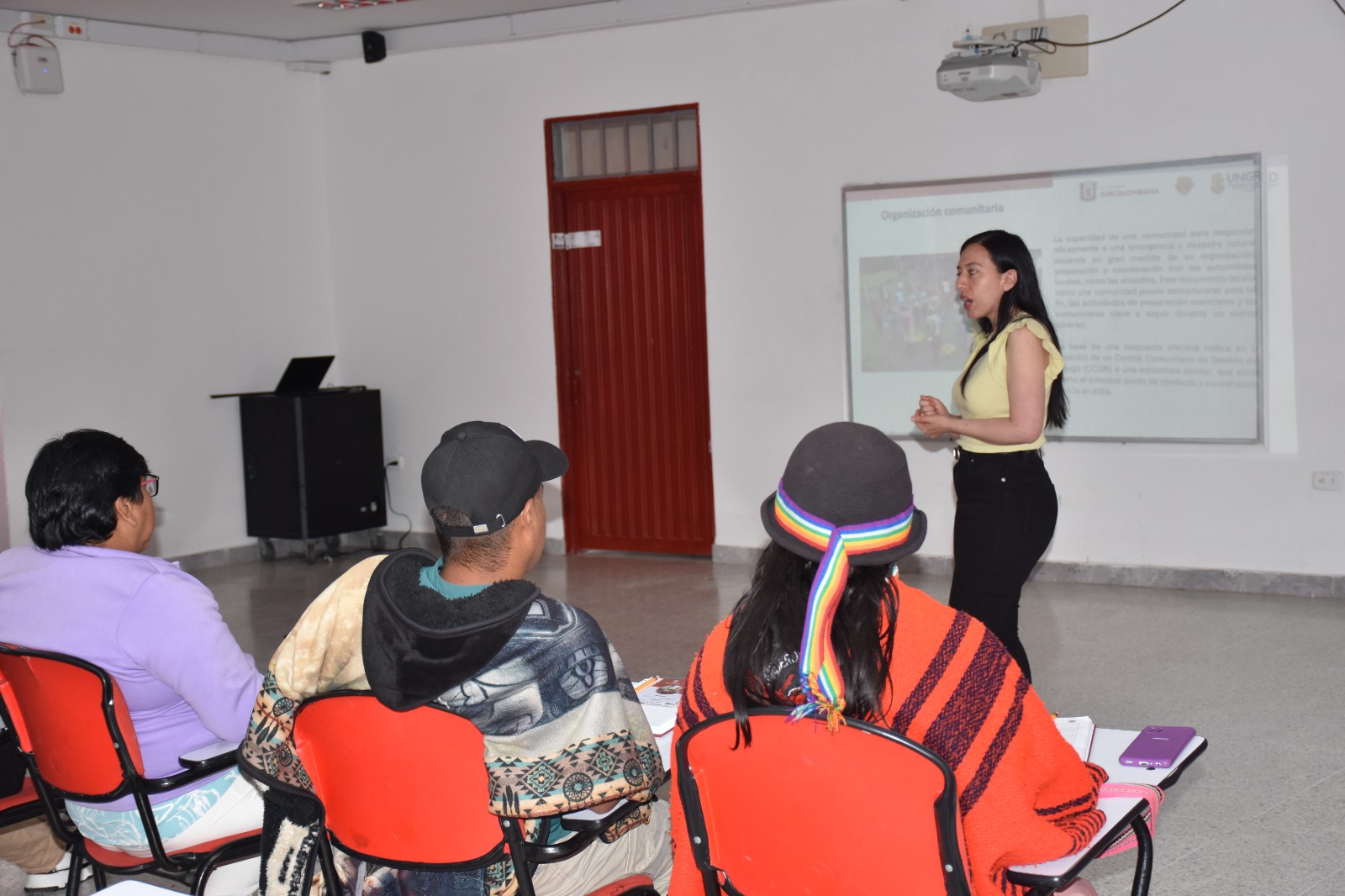 Durante este primer encuentro de dos días hicieron presencia, la Facultad de Ciencias Sociales y Humanas, a través de la decana Zulma Yadira Cepeda y su equipo de trabajo; también se contó con el acompañamiento de la Unidad Nacional de Gestión de Riesgos de Desastres, con la Profesional Social Ivonne Rocío Romero Brito, y la capacitadora experta, responsable del proceso de formación, Geóloga María Camila Jiménez Hernández.