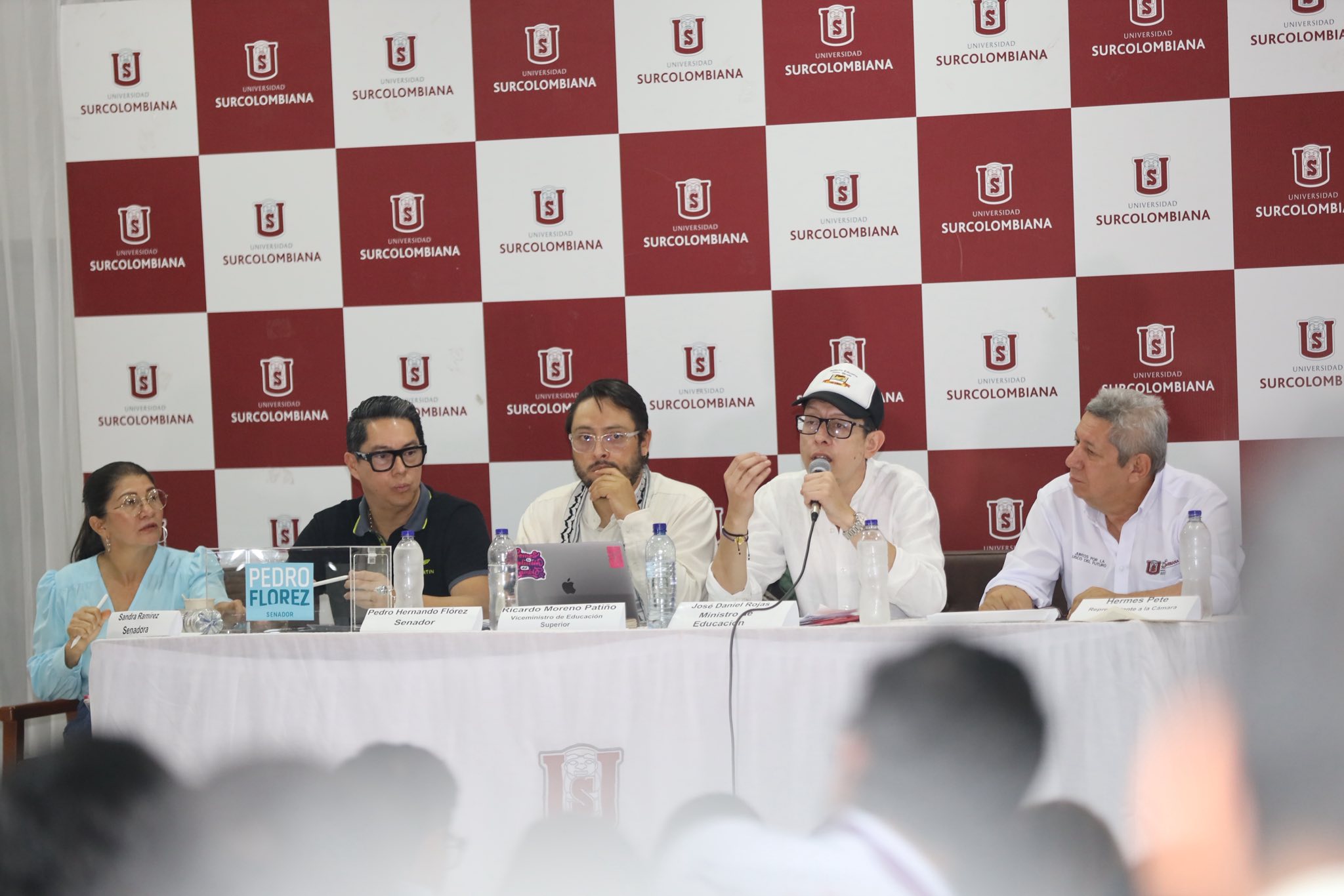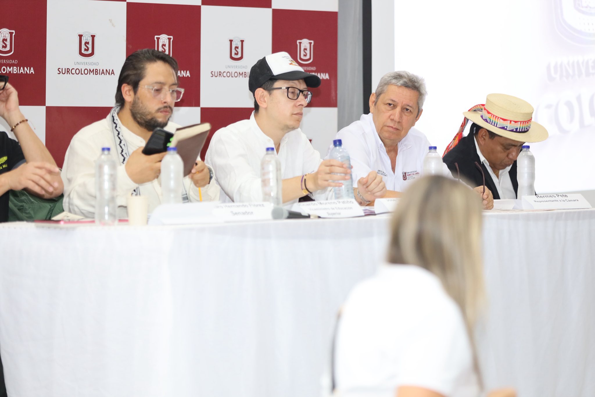 La audiencia contó además con la participación de la senadora Sandra Ramírez; el representante a la Cámara, Hermes Pete; los alcaldes de Neiva, Germán Casagua, y de La Plata, Camilo Ospina; el viceministro de Educación Superior, Ricardo Moreno Patiño; integrantes del Consejo Superior Universitario; concejales de Neiva, diputados; y representantes de organizaciones sindicales y de estudiantes.