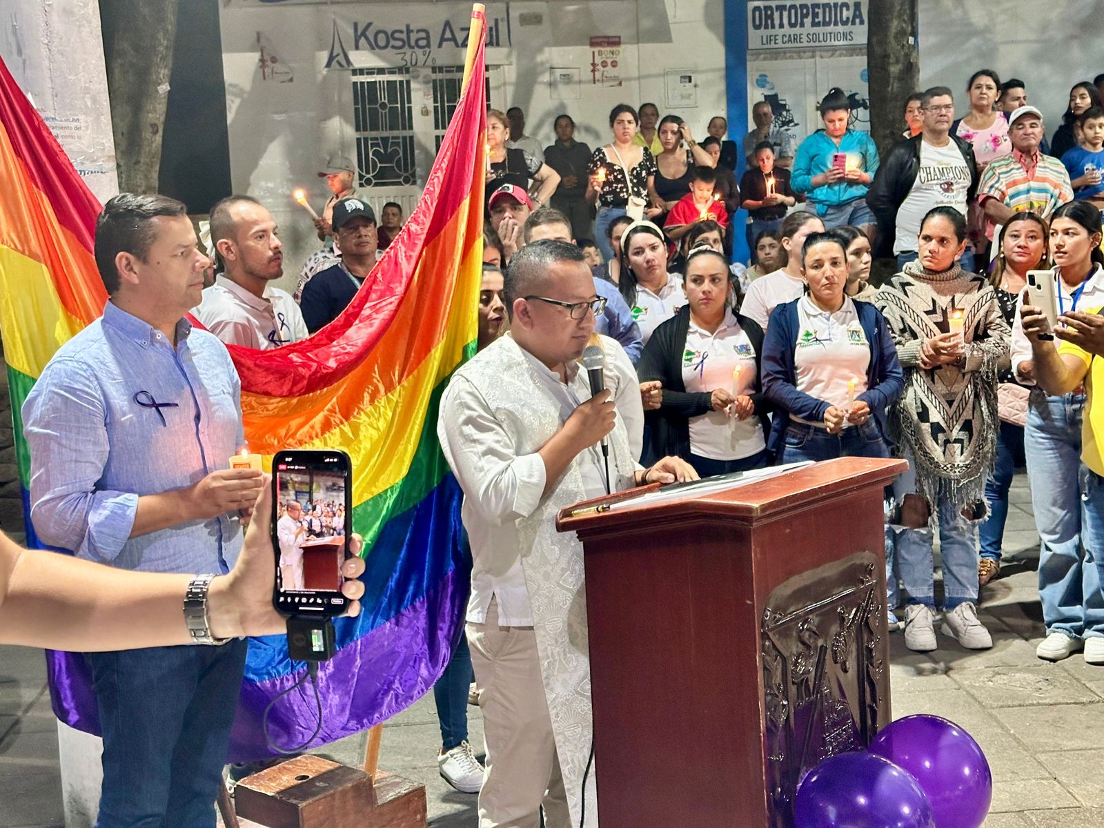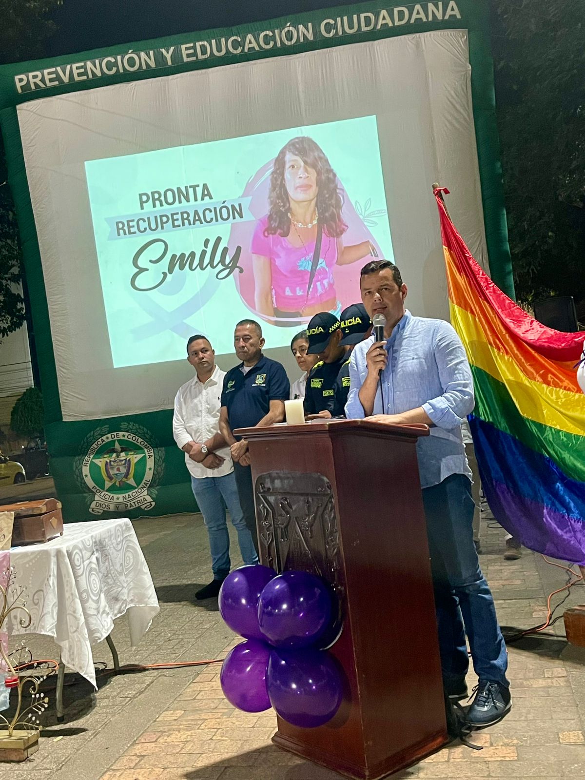 El alcalde los garzoneños, Francisco Calderón Feriz, la gestora social, Anghel Gómez, familiares de la victima, representantes de la iglesia católica, funcionarios de la Administración Municipal, concejales, autoridades de policía, comunidad LGTBIQ+ y sociedad en general, acompañaron el acto de solidaridad.